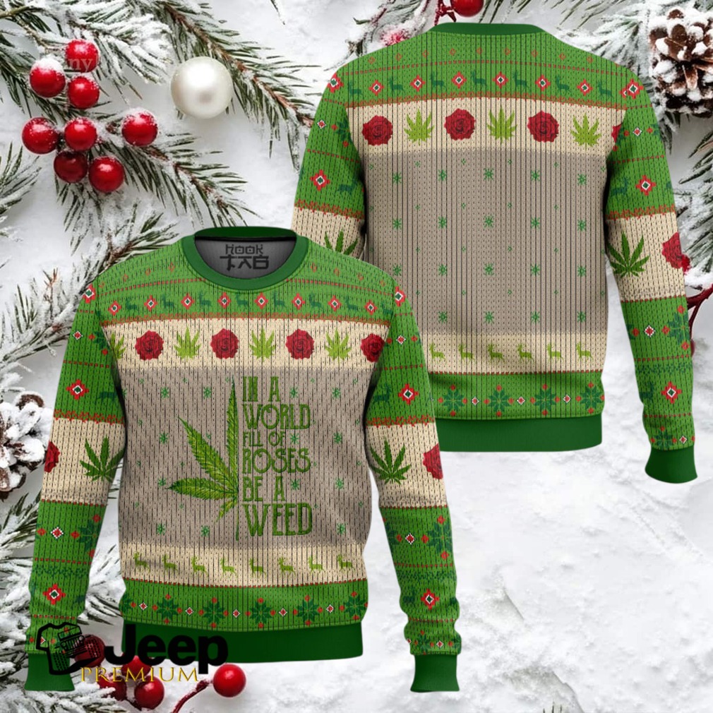 👕 About 420 In A World Full Of Roses Be A Weed Ugly Christmas Sweater