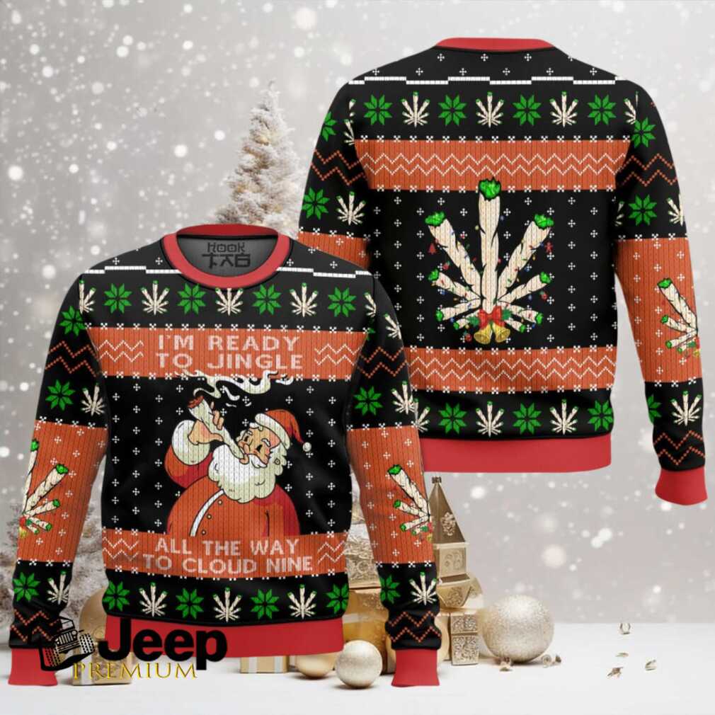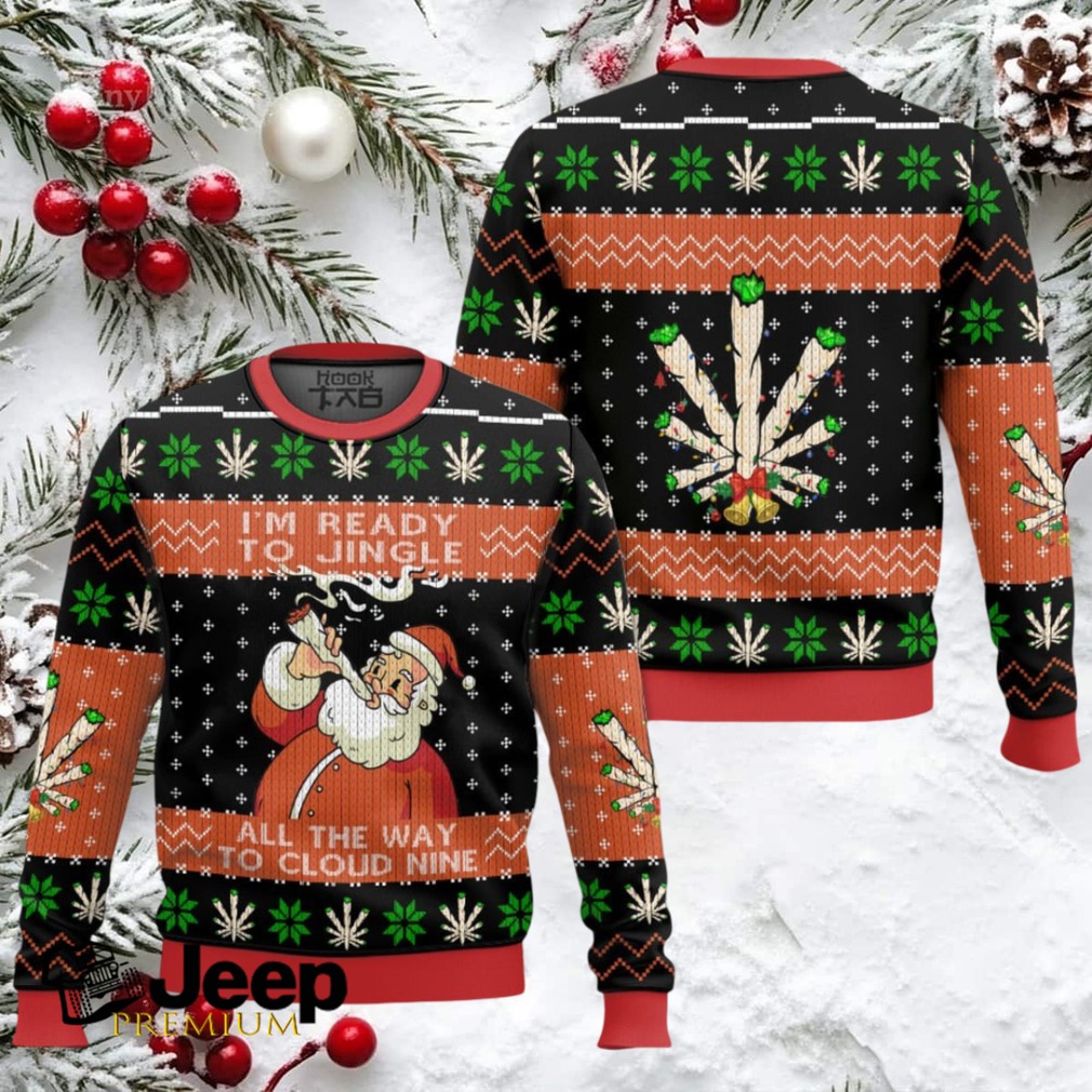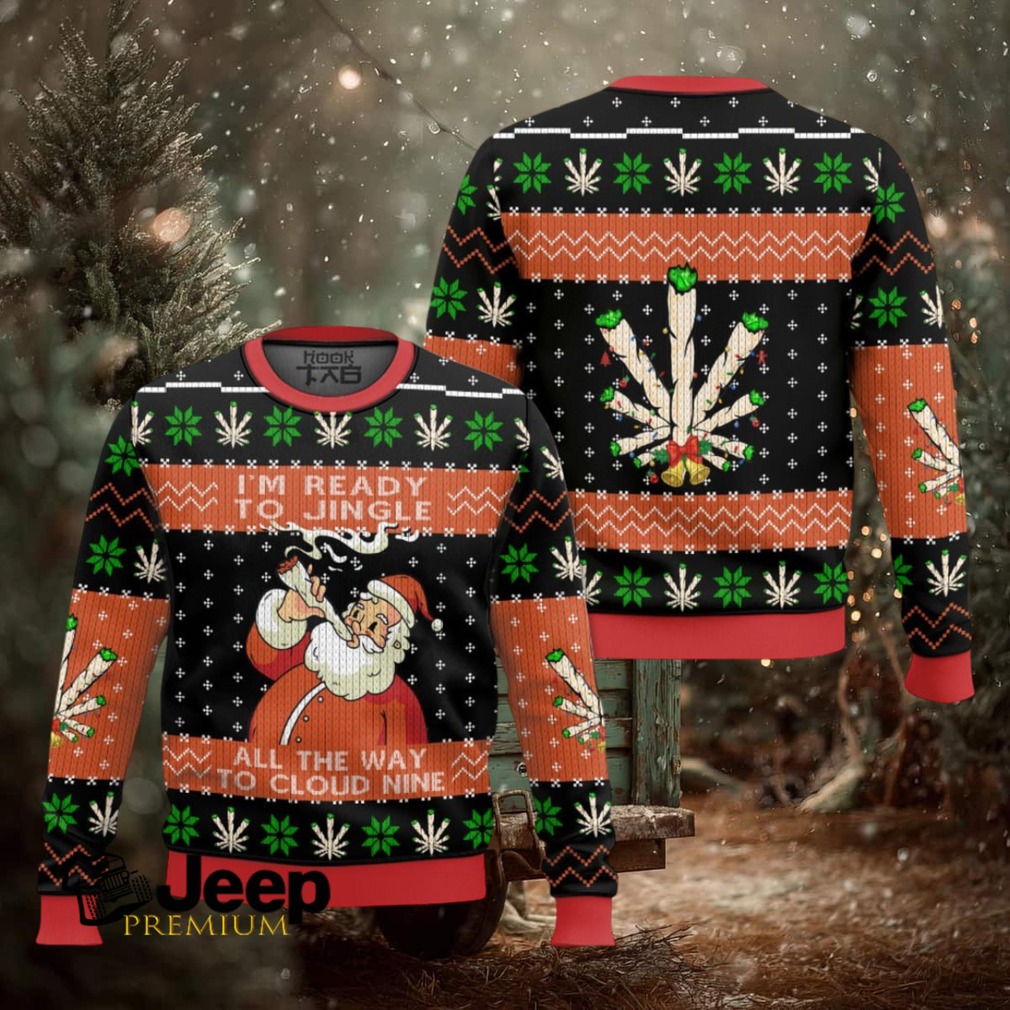 👕 About 420 Santa “I’m Ready To Jingle All The Way To Cloud Nine” Ugly Christmas Sweater