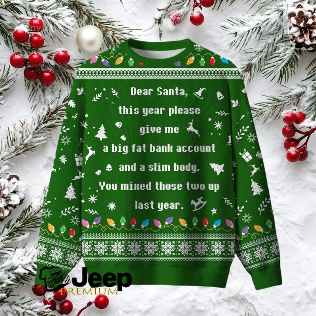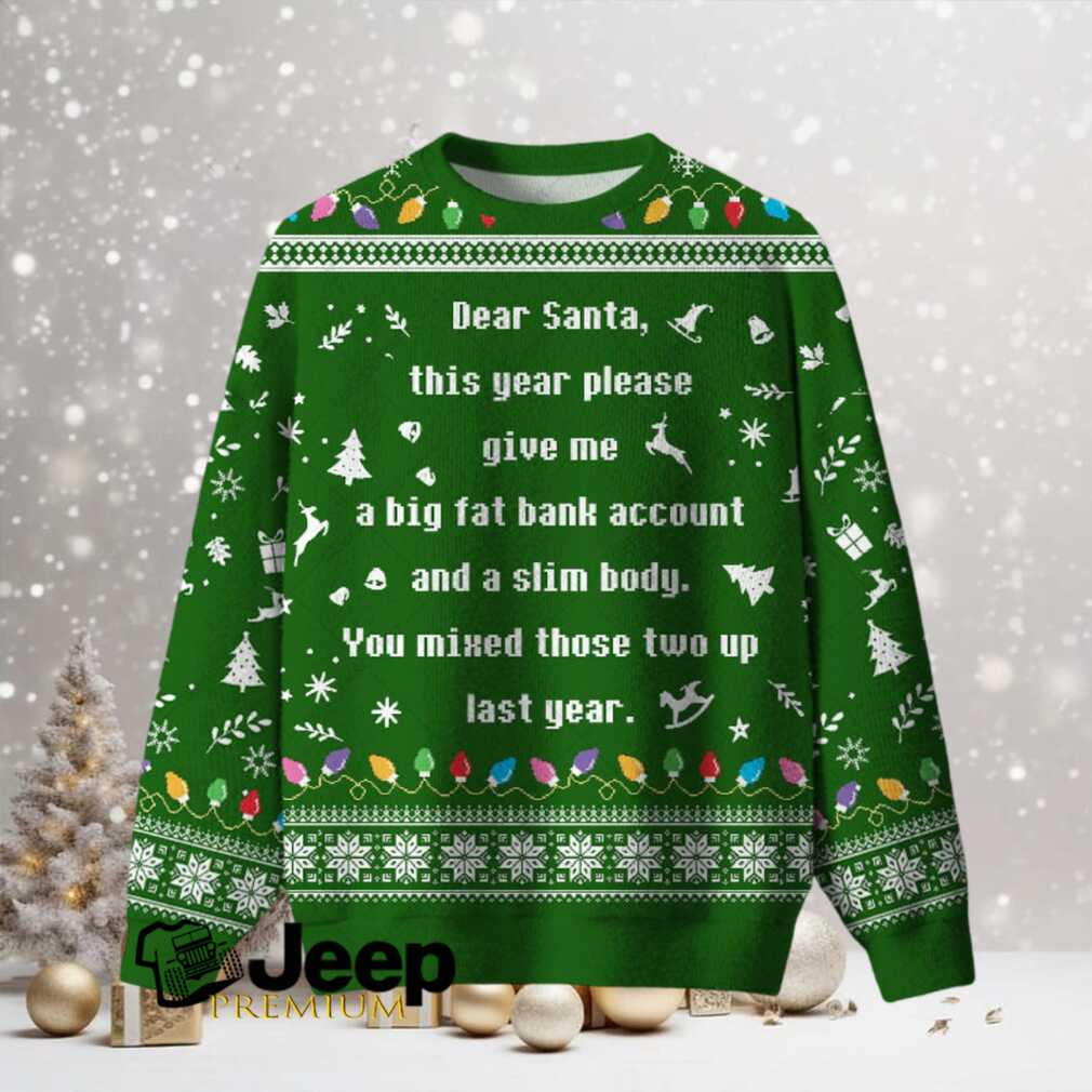 Ever dreamt of a holiday where your wallet is as full as your belly isn’t? This “A Big Fat Bank Account And A Slim Body Ugly Christmas Fuzzy Fleece Sweatshirt” perfectly captures that universally relatable wish with a hilarious twist. It’s more than just a sweatshirt; it’s a conversation starter, a chuckle-inducer, and your go-to for spreading some ironic cheer this festive season. Get ready to be the life of the ugly Christmas sweater party, or simply enjoy a cozy night in, dreaming big.