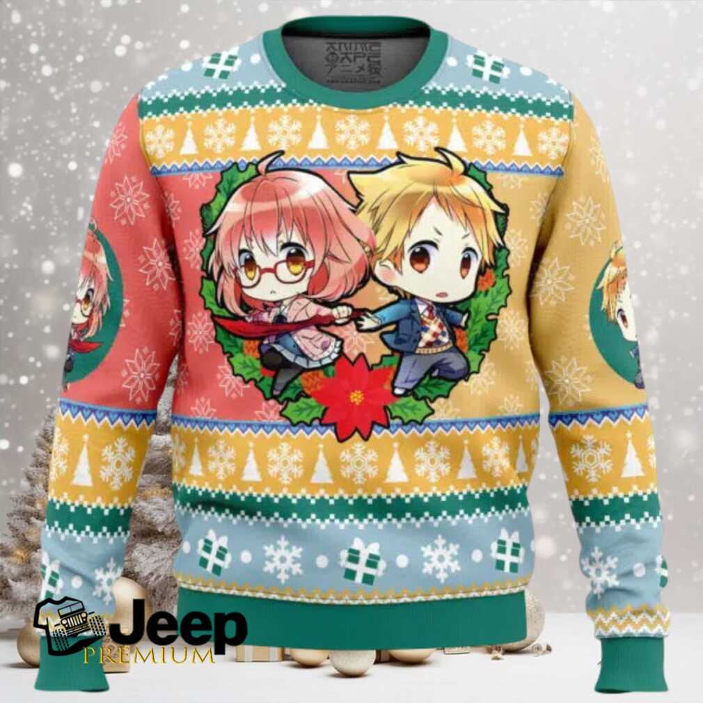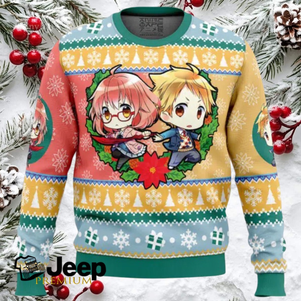 Step into a world beyond the ordinary this holiday season with this Akihito and Mirai Beyond the Boundary Ugly Christmas Sweater! Perfect for fans who want to celebrate their favorite anime in a festive, eye-catching way. It’s a unique way to express your love for the series!