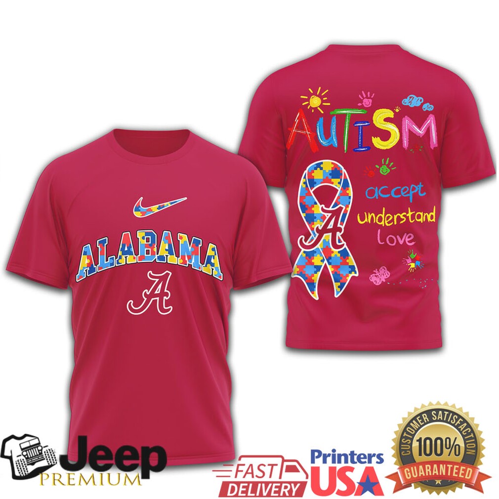 ()Alabama Crimson Tide Autism Awareness T Shirt Accept Understand Love Ribbon, Treat yourself or make a great gift for your loved ones