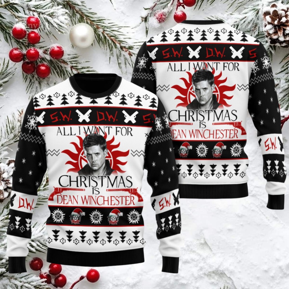 👕 About All I Want For Christmas Is Dean Winchester Ugly Christmas Sweater