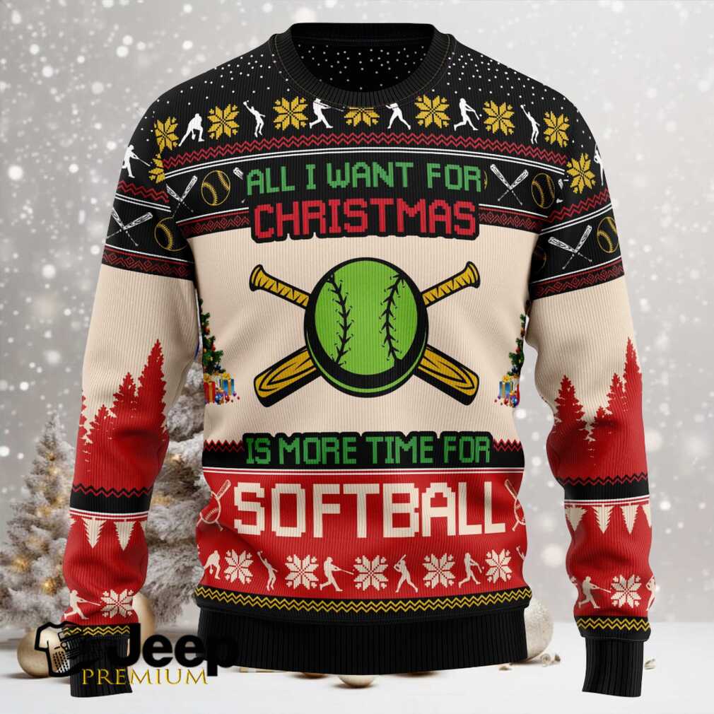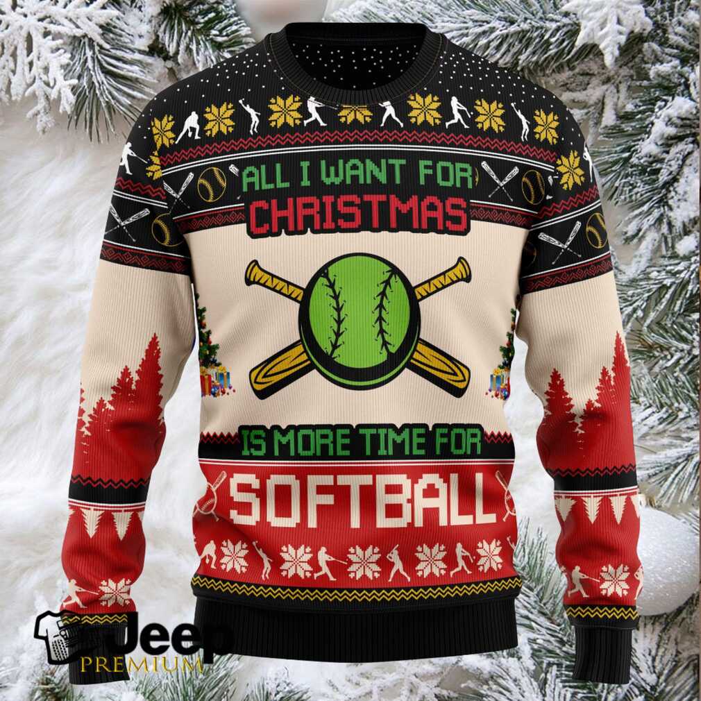 👕 About All I Want For Christmas Is More Time For Softball Ugly Christmas Sweater
