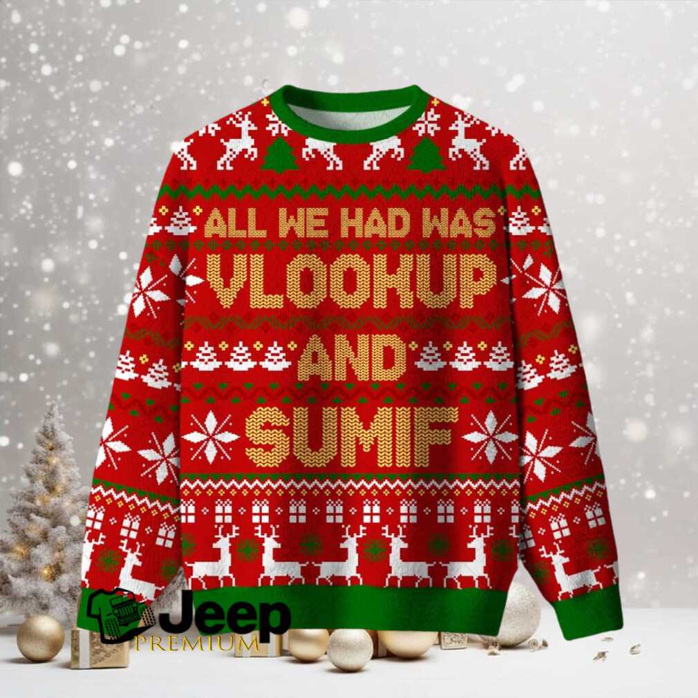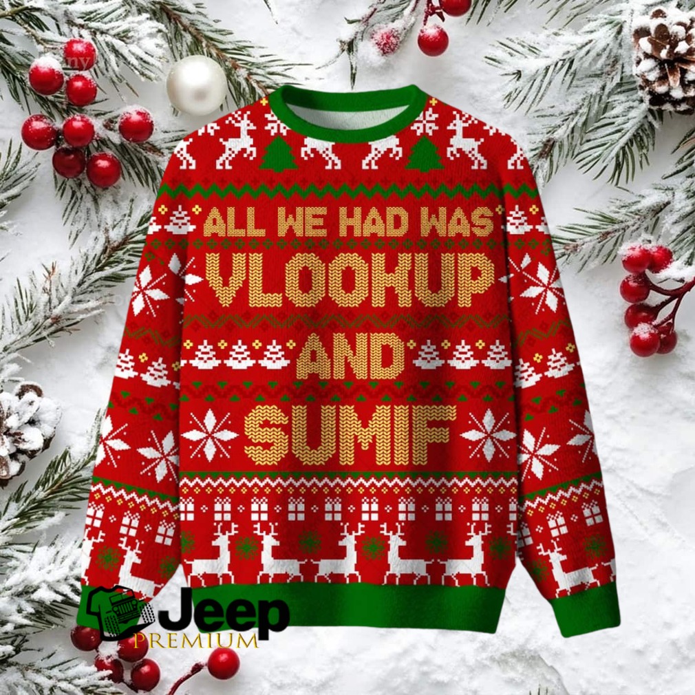 For those whose holiday season is filled with spreadsheets and late nights crunching numbers, this “All We Had Was Vlookup and Sumif Ugly Christmas Fuzzy Fleece Sweatshirt” speaks your language. It’s a cozy, funny, and nerdy way to celebrate Christmas while acknowledging the unsung heroes of the office. If you dream in cells and formulas, this sweatshirt is the perfect way to show off your Excel mastery (and your sense of humor).