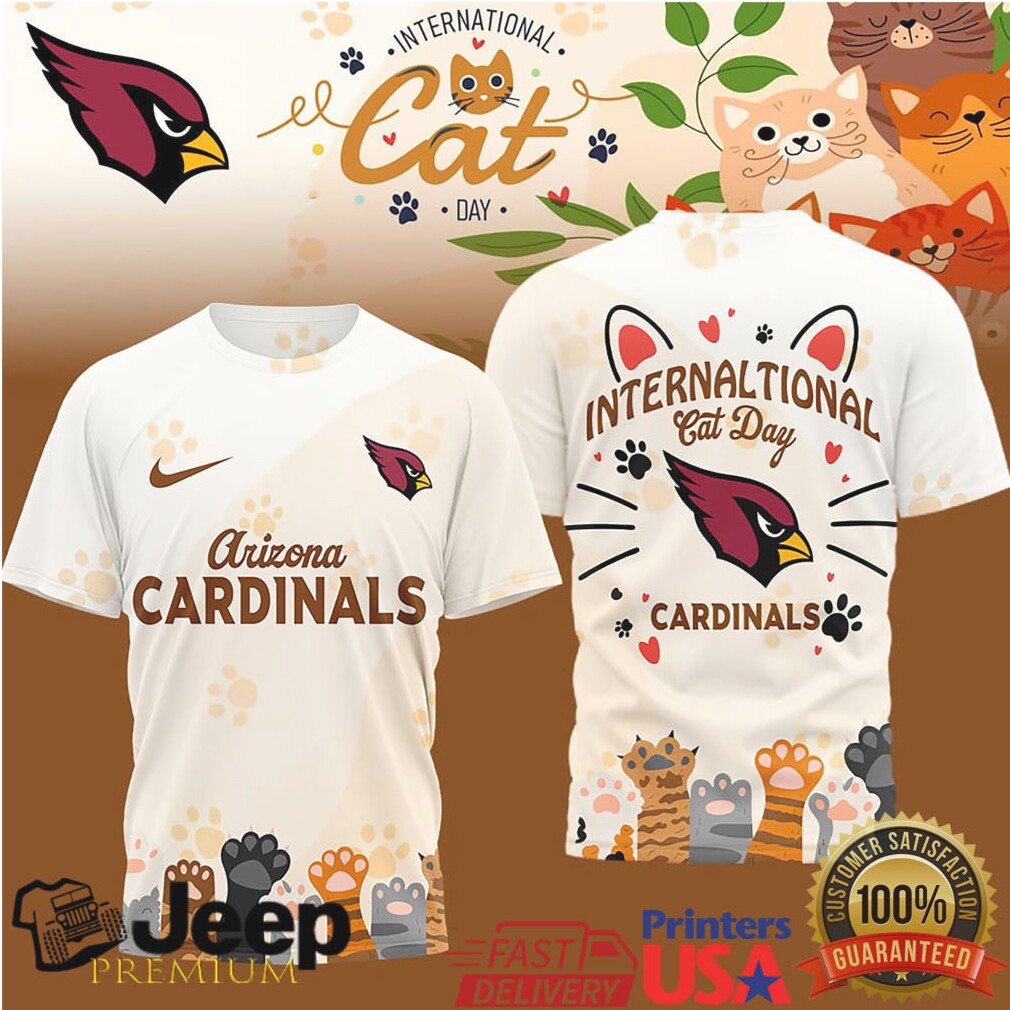 Sometimes, believe or not you need a younger guy to step up. Maybe that 4th rounder from 2 years ago needs to step up and start for a player who leaves for greener (richer) pastures via free agency. There are people around called ‘coaches’ in charge of making players better. If you lose a veteran and don’t have people ready to step up to replace them then you need a better set of coaches and/or front office personnel. Not every roster hole can be filled by a 1st round draft pick. Both teams enjoyed success – the Rams made the big game with Goff and won another with Stafford behind a defensive unit and cast of offensive skill players that came in the lower rounds of the draft, undrafted rookies and a few veteran Arizona Cardinals International Cat Day Special Edition Cream T Shirt. Plenty of good (and even some great) players are on the board after day 1, and I’m sure a few of them will find their way to Indy, Atlanta, Jacksonville and Green Bay. The Browns won’t suffer as much because they’ve already got a pretty good team and it appears Watson will be at least pretty good so there’s that.