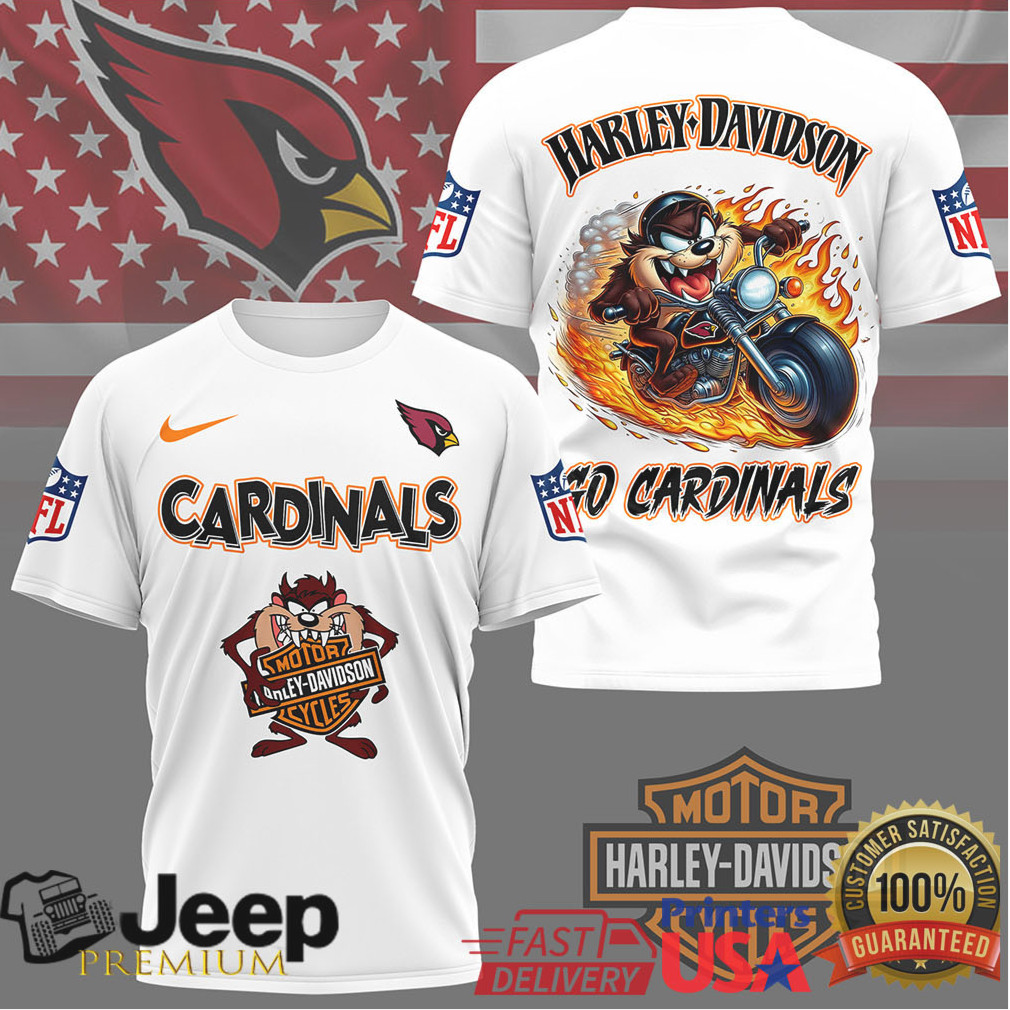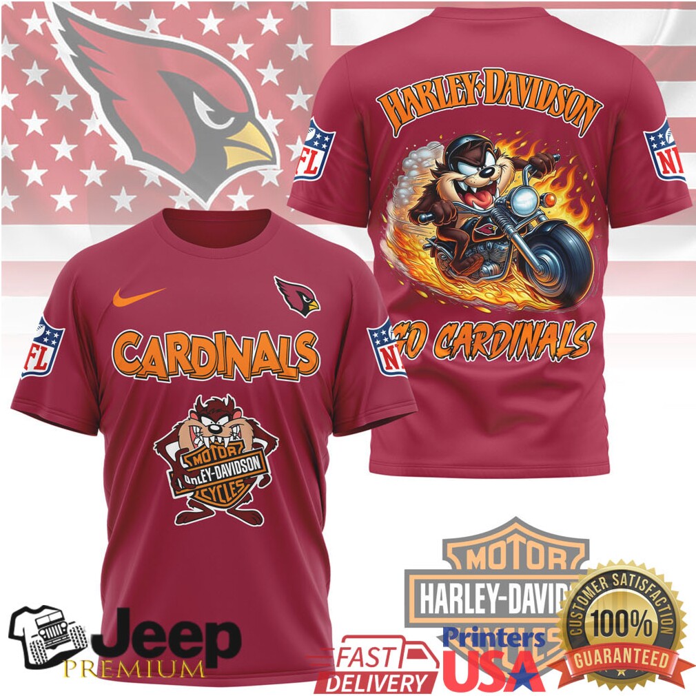()Arizona Cardinals x Harley Davidson Taz Biker Flame NFL Sportswear T Shirt, Treat yourself or make a great gift for your loved ones