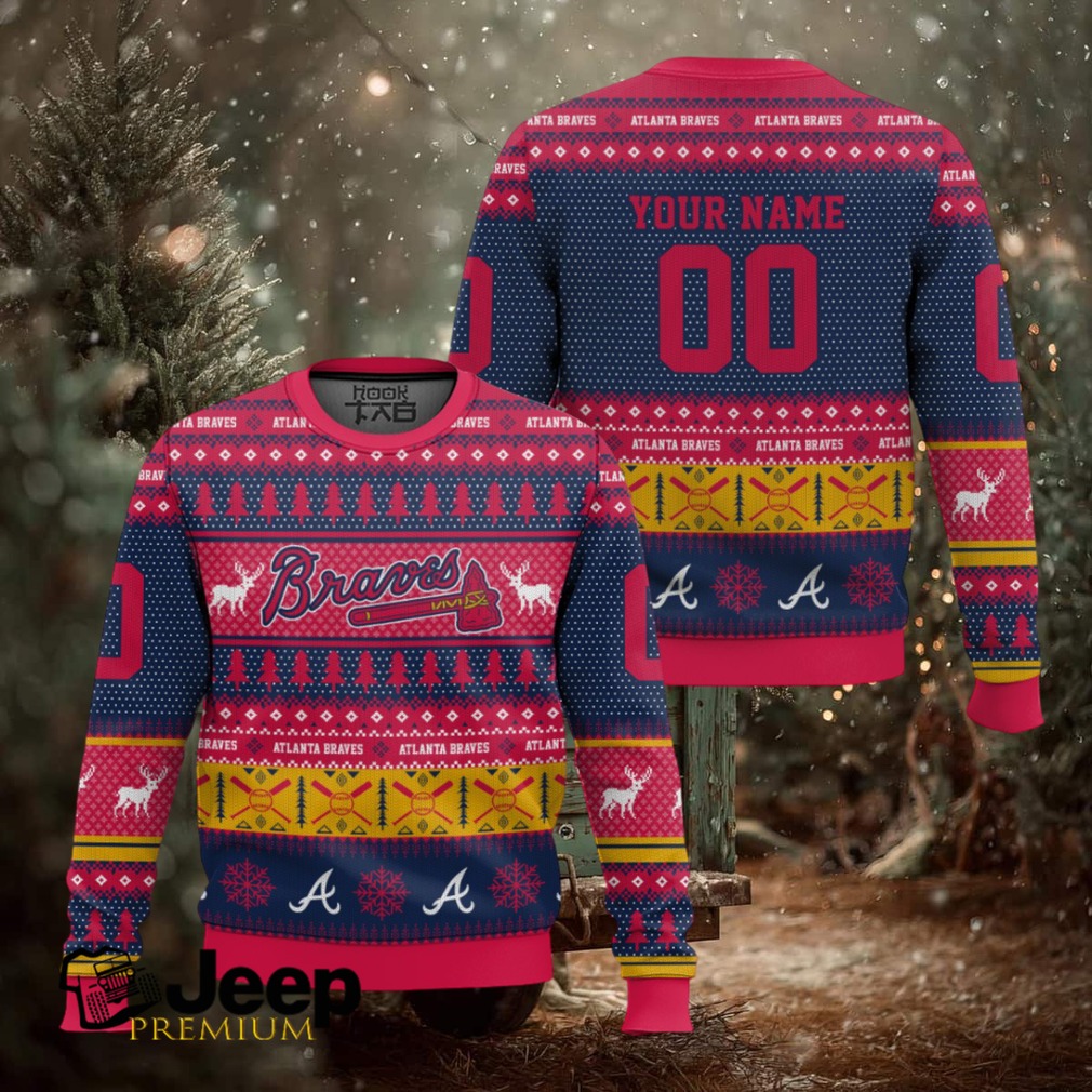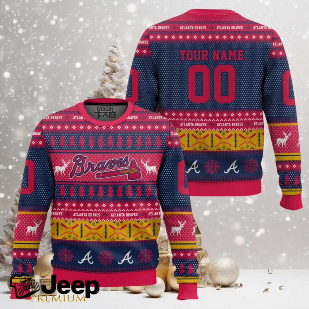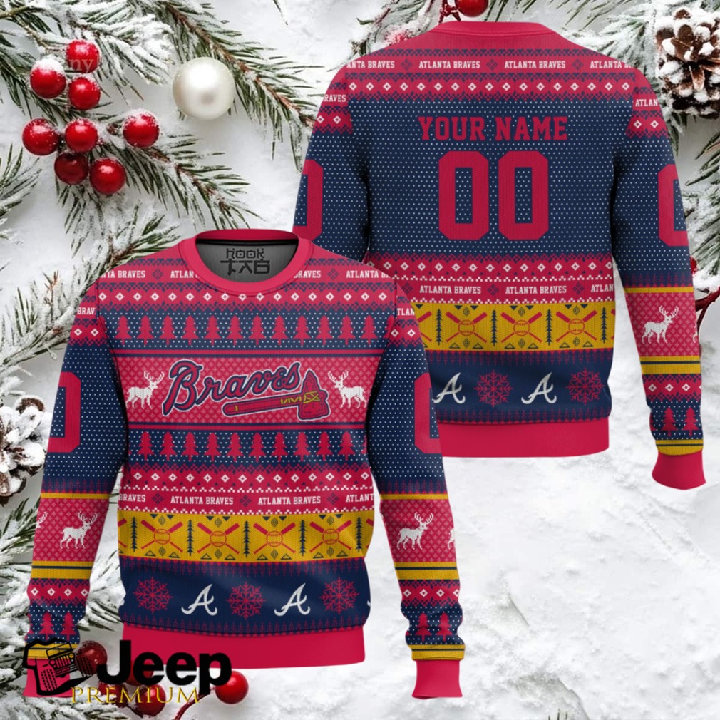 👕 About Atlanta Braves – Custom Name And Number Ugly Sweater