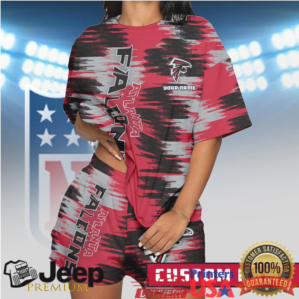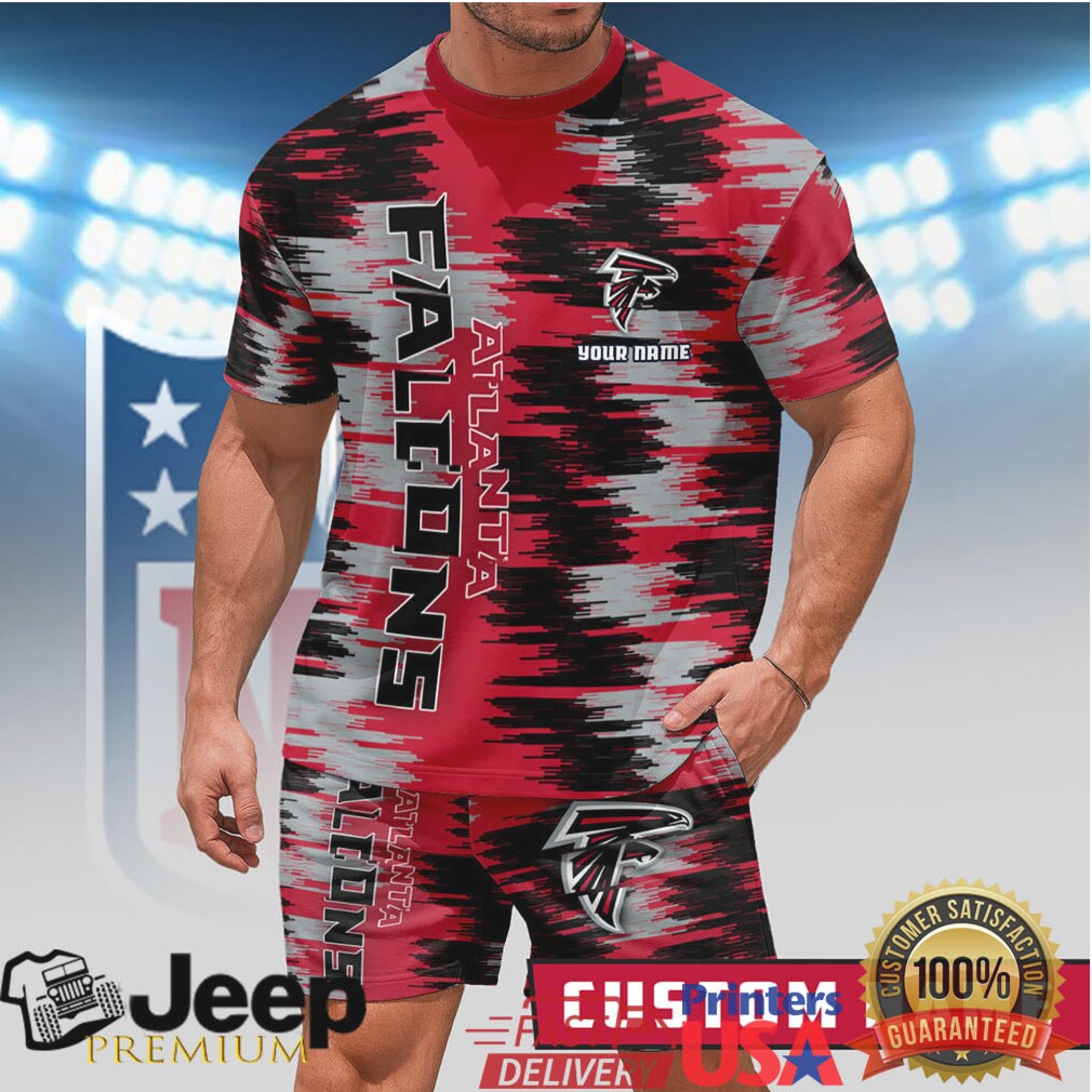 (Atlanta Falcons Custom Name Personalized T Shirt & Shorts Set Red & Black Abstract Design)Atlanta Falcons Custom Name Personalized T Shirt & Shorts Set Red & Black Abstract Design, Treat yourself or make a great gift for your loved ones