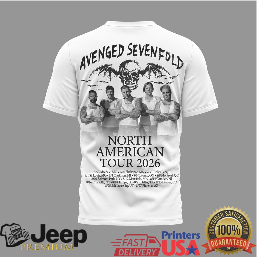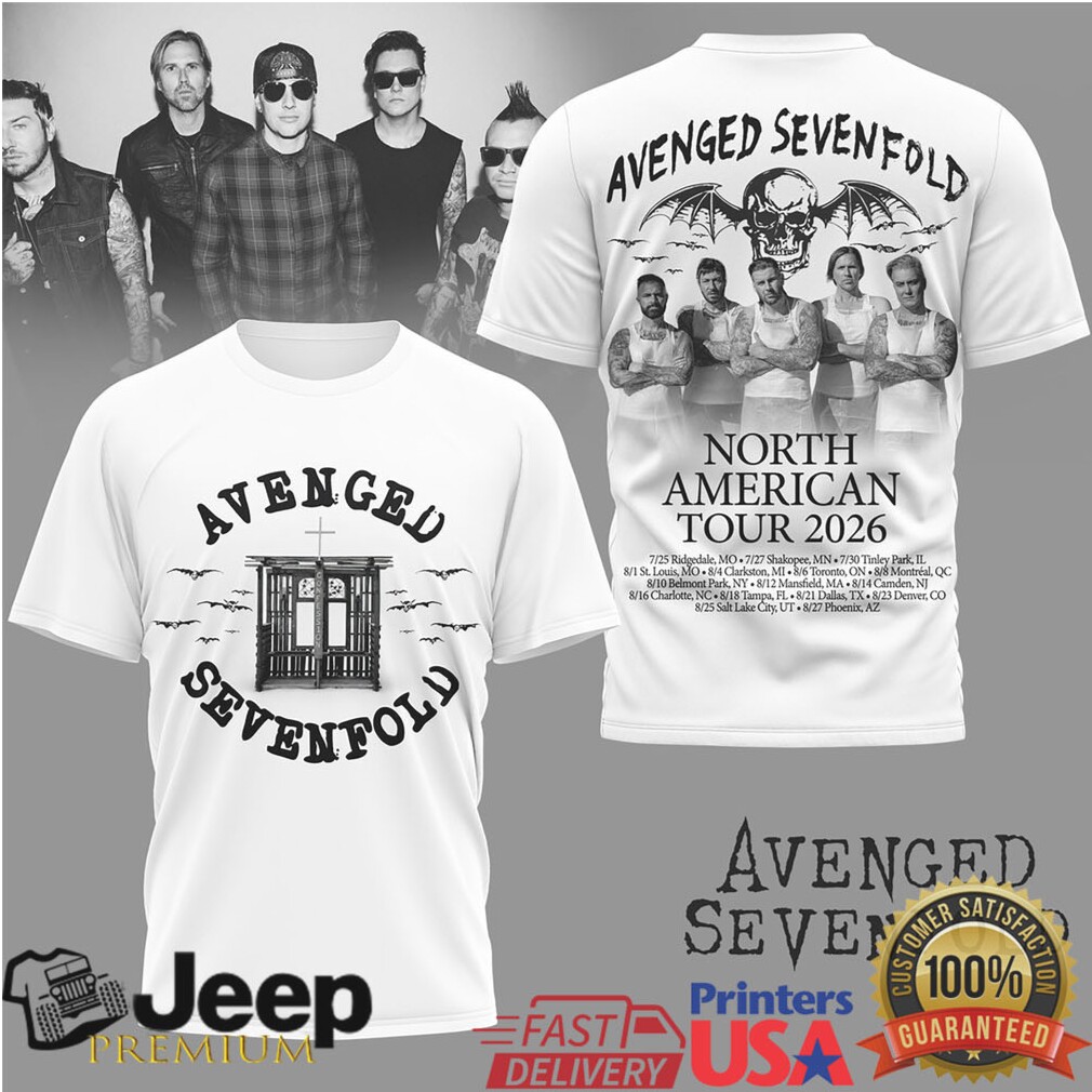 👕 About Avenged Sevenfold North American Tour 2026 White Graphic T Shirt