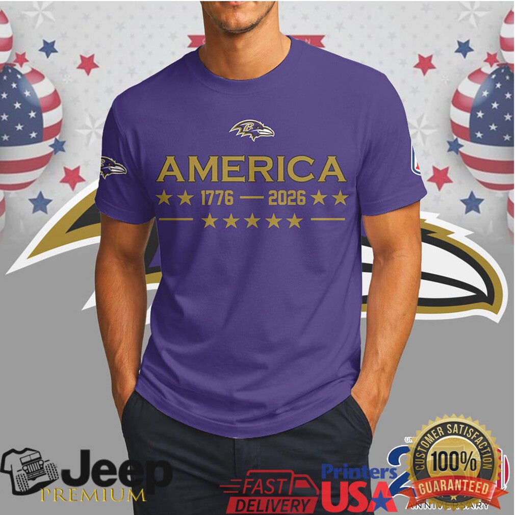 Celebrate 250 years of American freedom alongside your Baltimore Ravens pride with this patriotic graphic tee. Featuring bold 1776–2026 anniversary artwork with team-themed patriotic imagery, it’s the perfect way to honor both your team and your country. Ideal for July 4th, tailgates, and beyond.