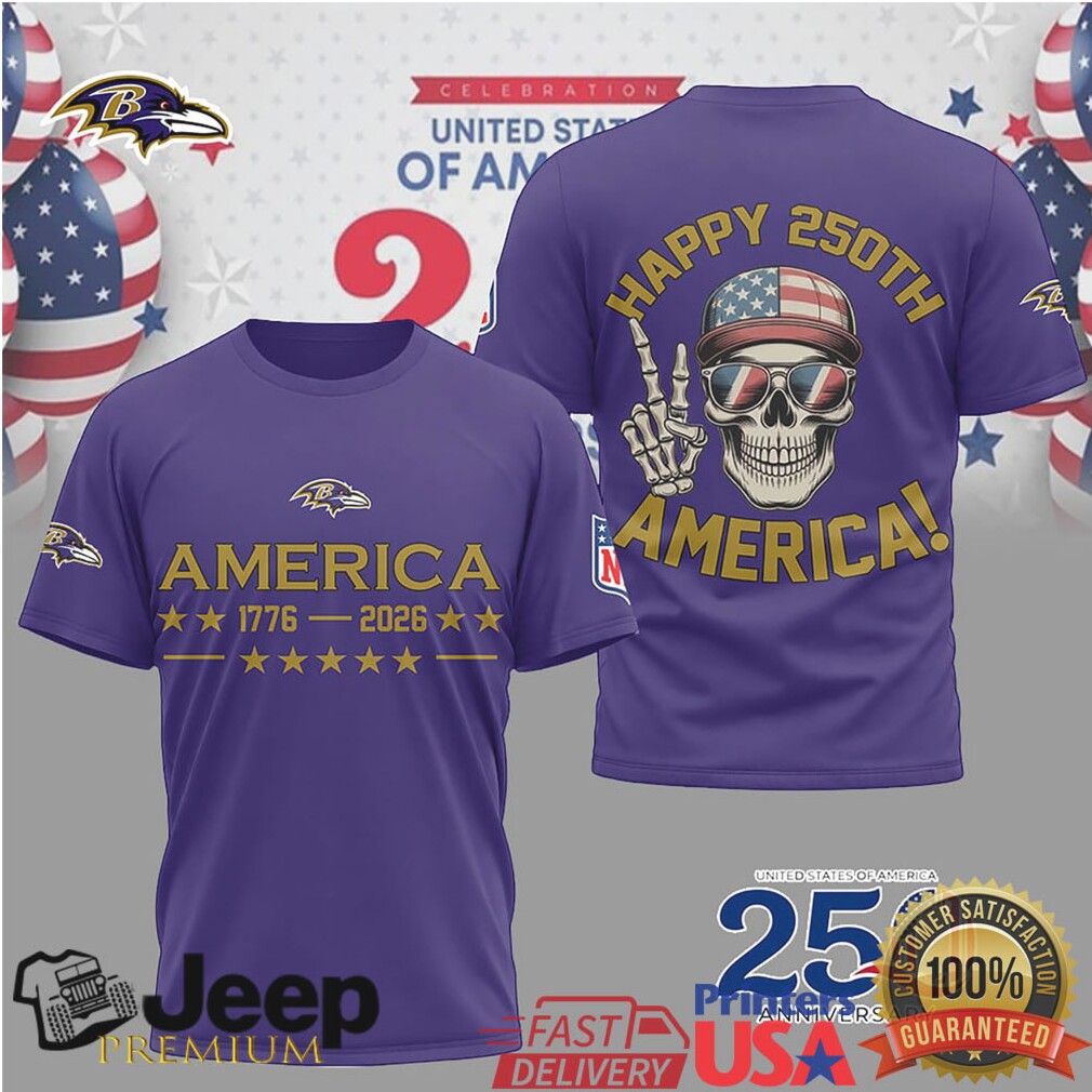 (Baltimore Ravens Happy 250th Anniversary America 1776 2026 Skull T Shirt)