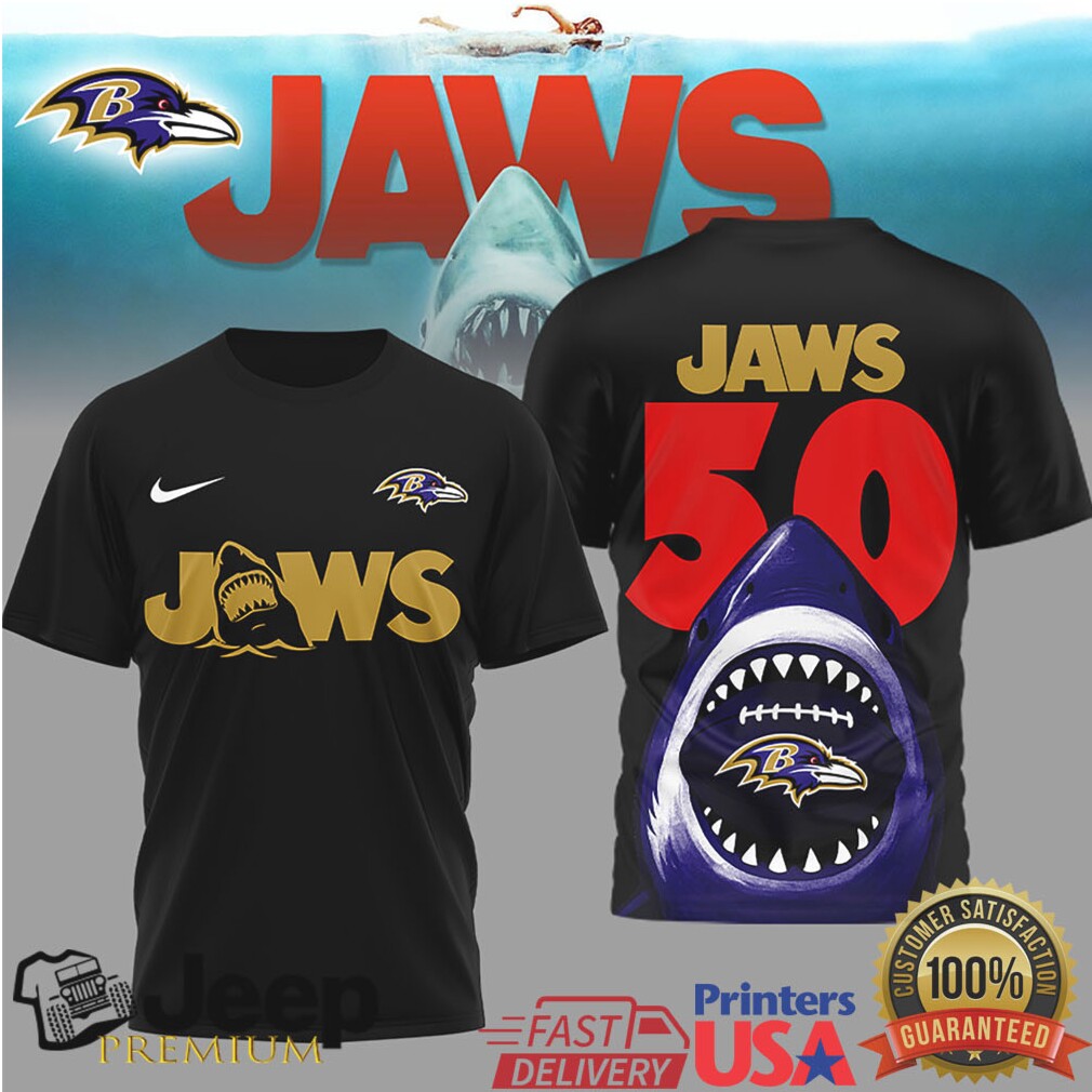 ()Baltimore Ravens Jaws 50th Anniversary Shark Attack Graphic T Shirt, Treat yourself or make a great gift for your loved ones
