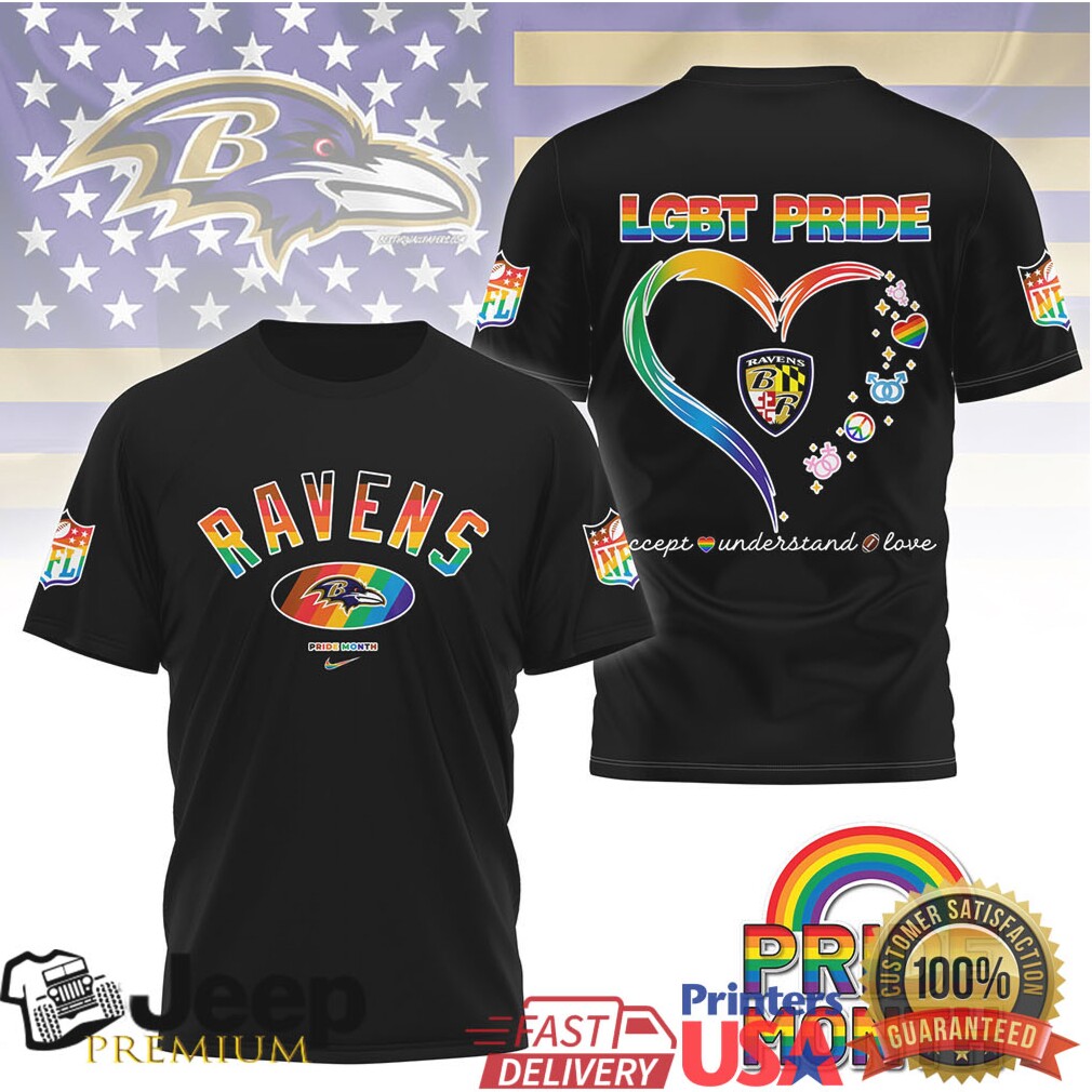 Baltimore Ravens LGBT Pride Month Rainbow Heart T Shirt