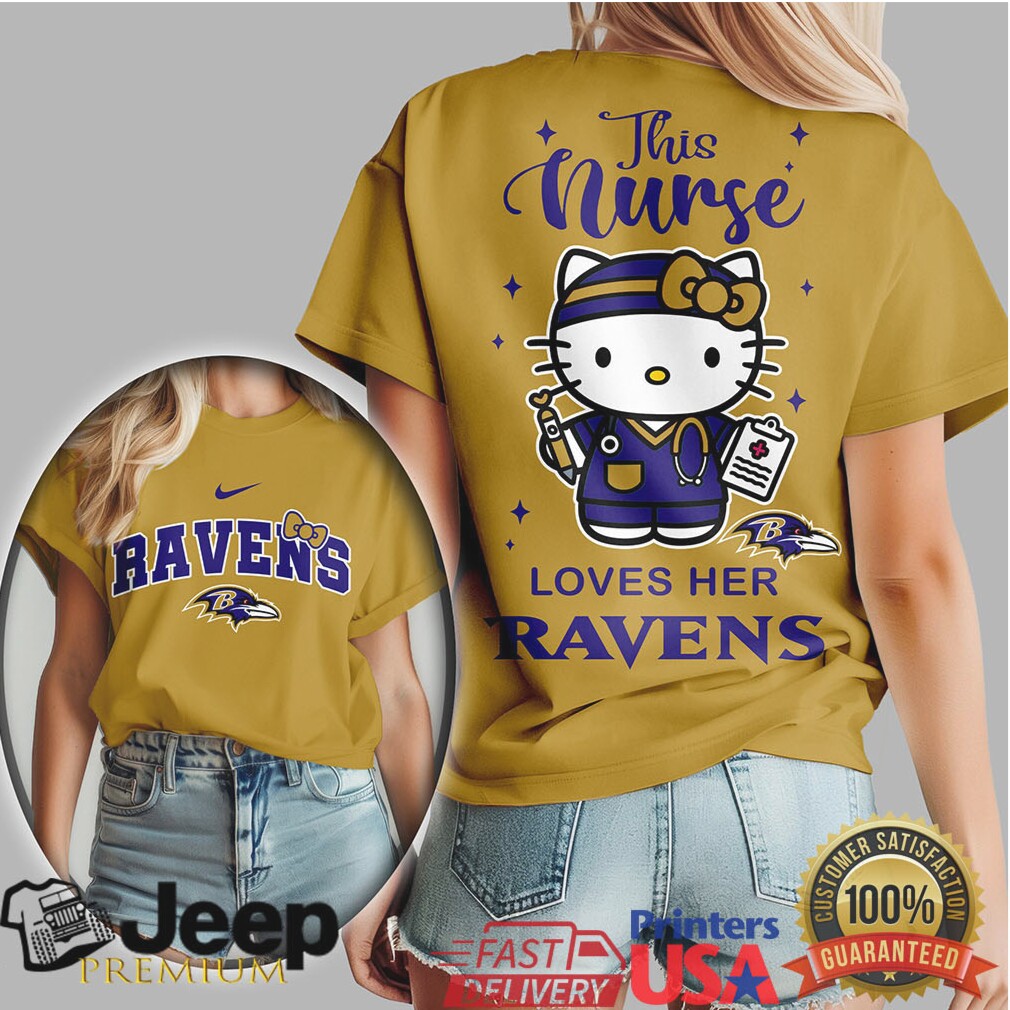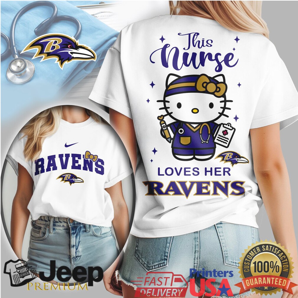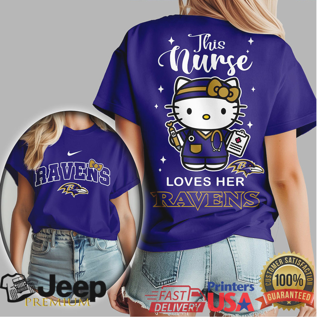 (Baltimore Ravens This Nurse Loves Her Ravens Hello Kitty Tee)