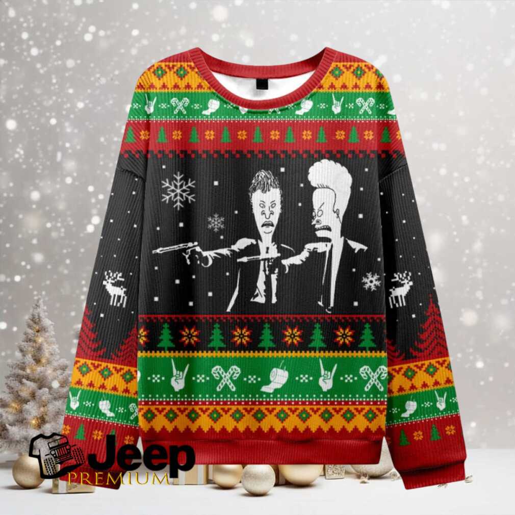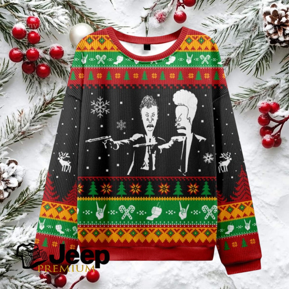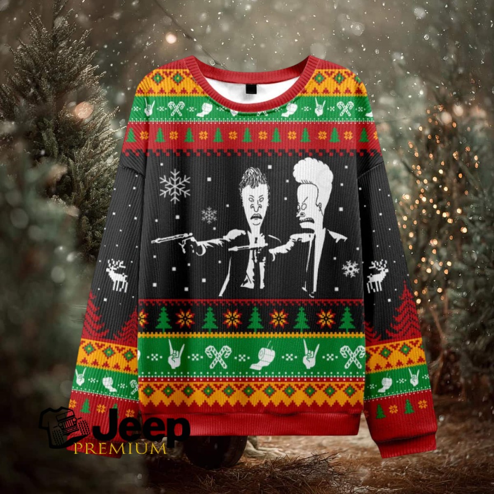 What Makes This Beavis And Butthead Pulp Fiction Nerd Ugly Christmas Fuzzy Fleece Sweatshirt Epic