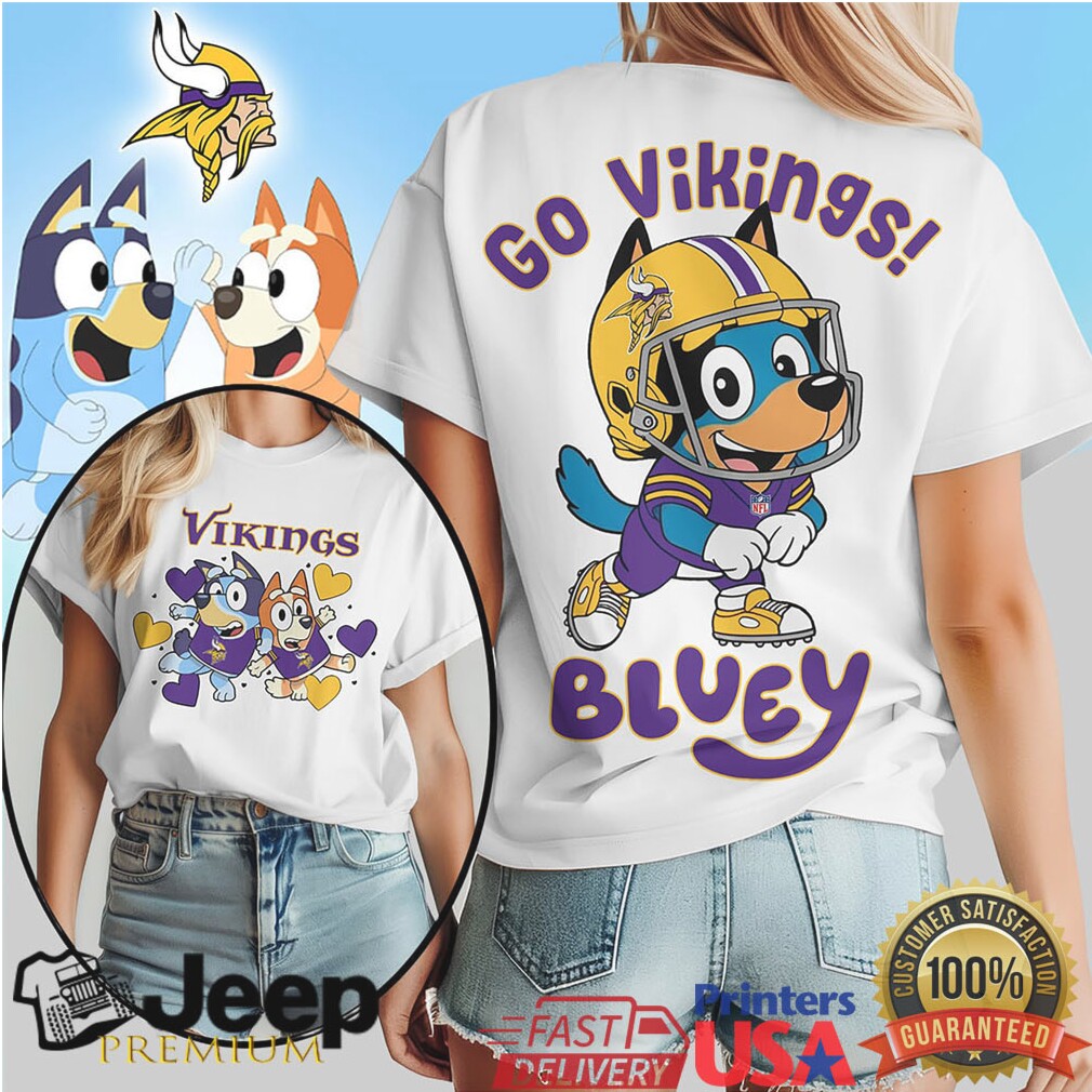 (Bluey Style Minnesota Vikings Football Fan T Shirt Go Vikings Dog Design)International cricket is entering its final preparatory week for the 2026 T20 World Cup, with host nations India and Sri Lanka announcing “Affordability First” ticket pricing starting at just ₹100 ($1.11). While India’s squad under Suryakumar Yadav is largely settled, England captain Harry Brook is facing selection headaches following Bluey Style Minnesota Vikings Football Fan T Shirt Go Vikings Dog Design in Sri Lanka. Meanwhile, the Australia camp is sweating on the fitness of Pat Cummins (back) and Josh Hazlewood (hamstring), both of whom were named in the provisional 15-member squad but must pass fitness tests by the January 31 deadline to stay in the hunt for the trophy.