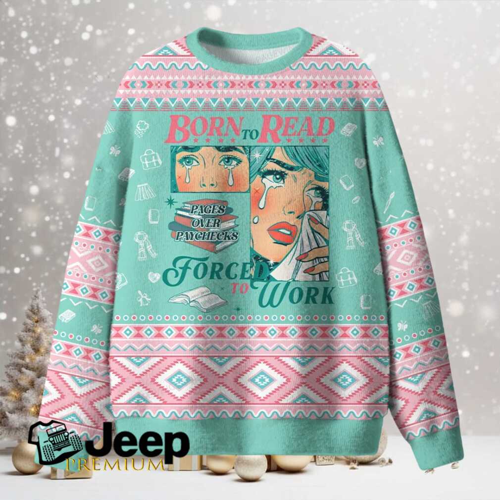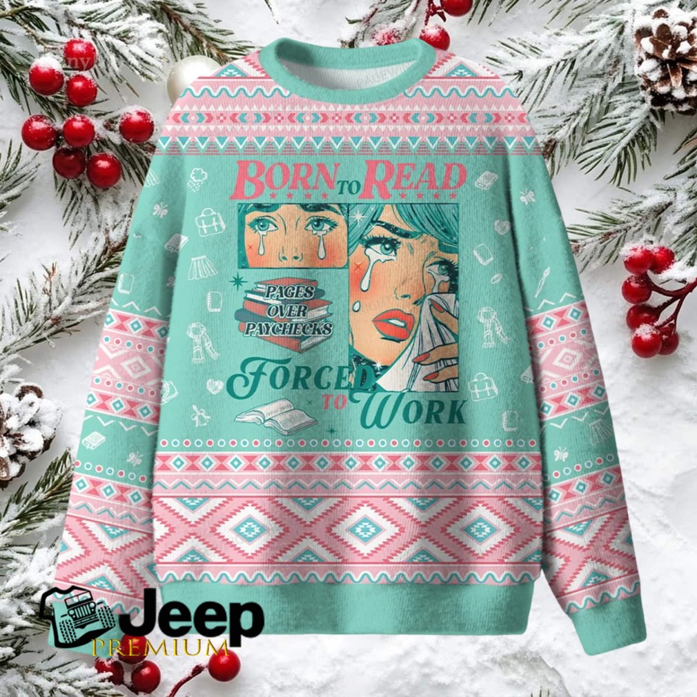 👕 About Born To Read Forced To Work Unisex Ugly Knit Sweatshirt (1)