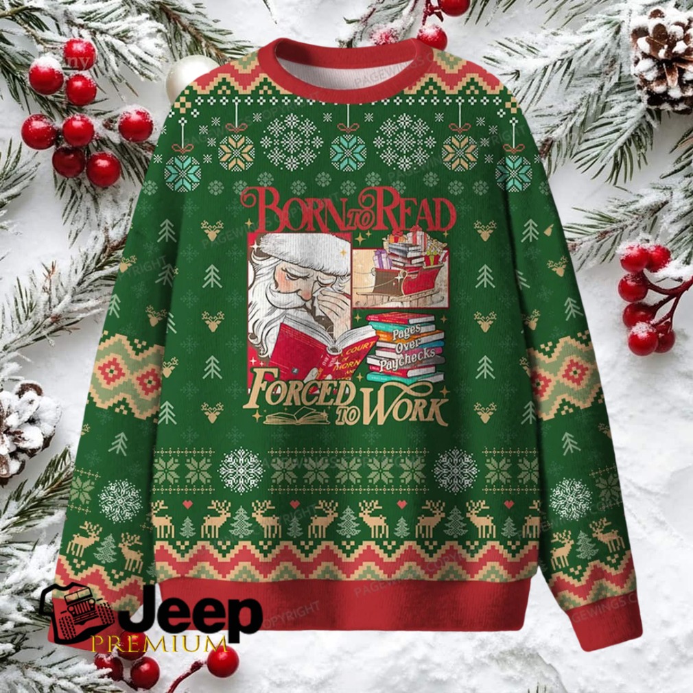 This “Born To Read Forced To Work” sweatshirt is ideal for the dedicated bookworm, the overworked student, the dreaming professional, or anyone who appreciates a witty and honest statement about life’s priorities. It’s a fantastic gift for friends, family members, or colleagues who share a passion for literature and a healthy dose of anti-work sentiment. Perfect for an ugly Christmas sweater party, a cozy night in with a book, or just casual everyday wear, this shirt is a comfortable and charming way to celebrate the joy of reading.