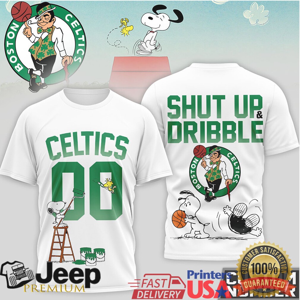 (Boston Celtics Snoopy Shut Up & Dribble Custom Number T Shirt)