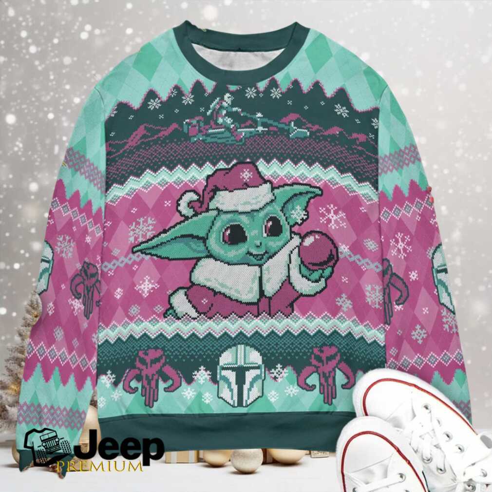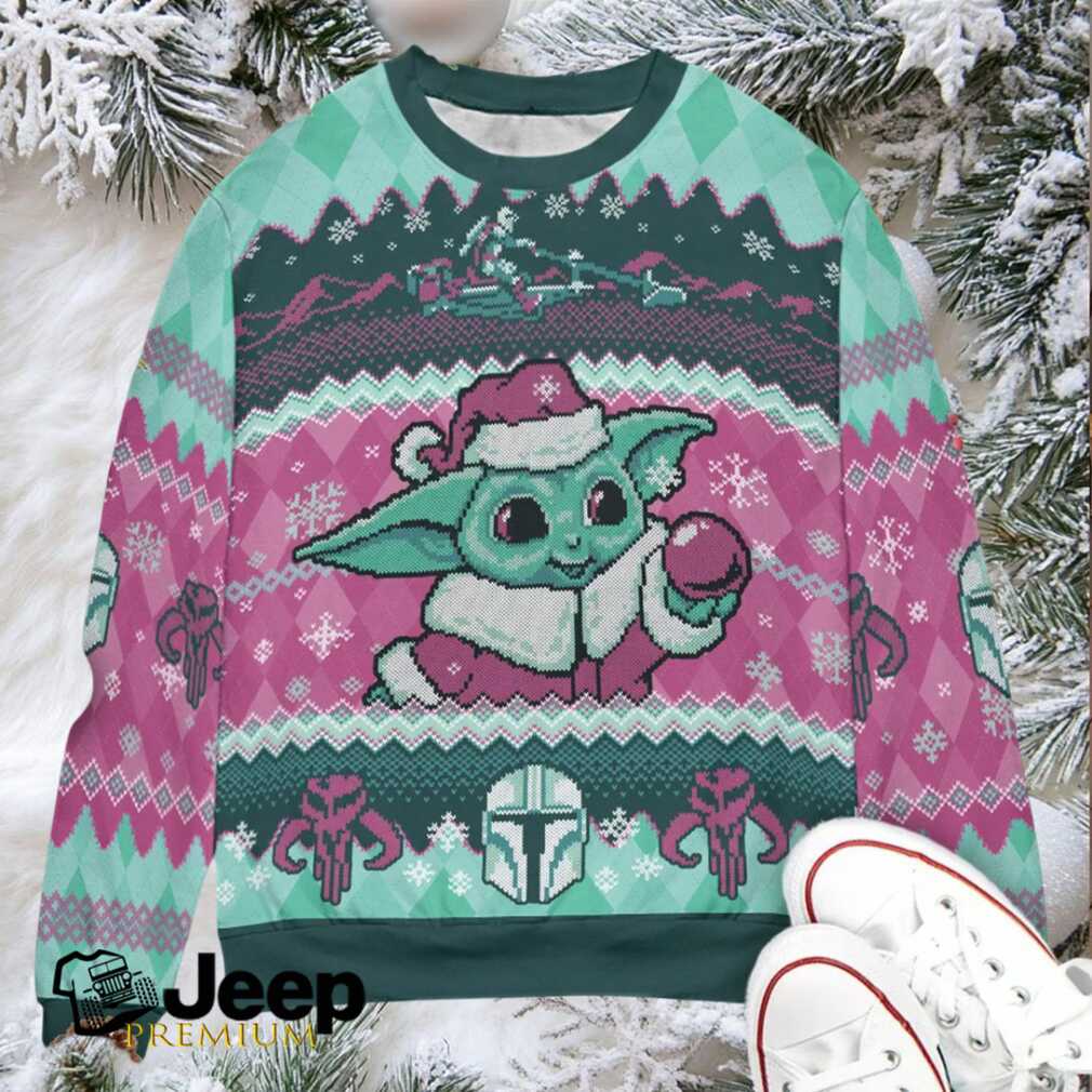 To keep your Bountiful Christmas Cute Baby Yoda Bounty Hunter Ugly Christmas Sweatshirt looking its best, machine wash it inside out in cold water and tumble dry on low. Avoid using bleach or ironing directly on the print to preserve the vibrant colors and intricate design for years to come.