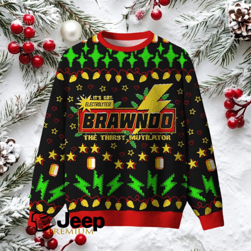 👕 About Brawndo – The Thirst Mutilator Ugly Christmas Fuzzy Fleece Sweatshirt