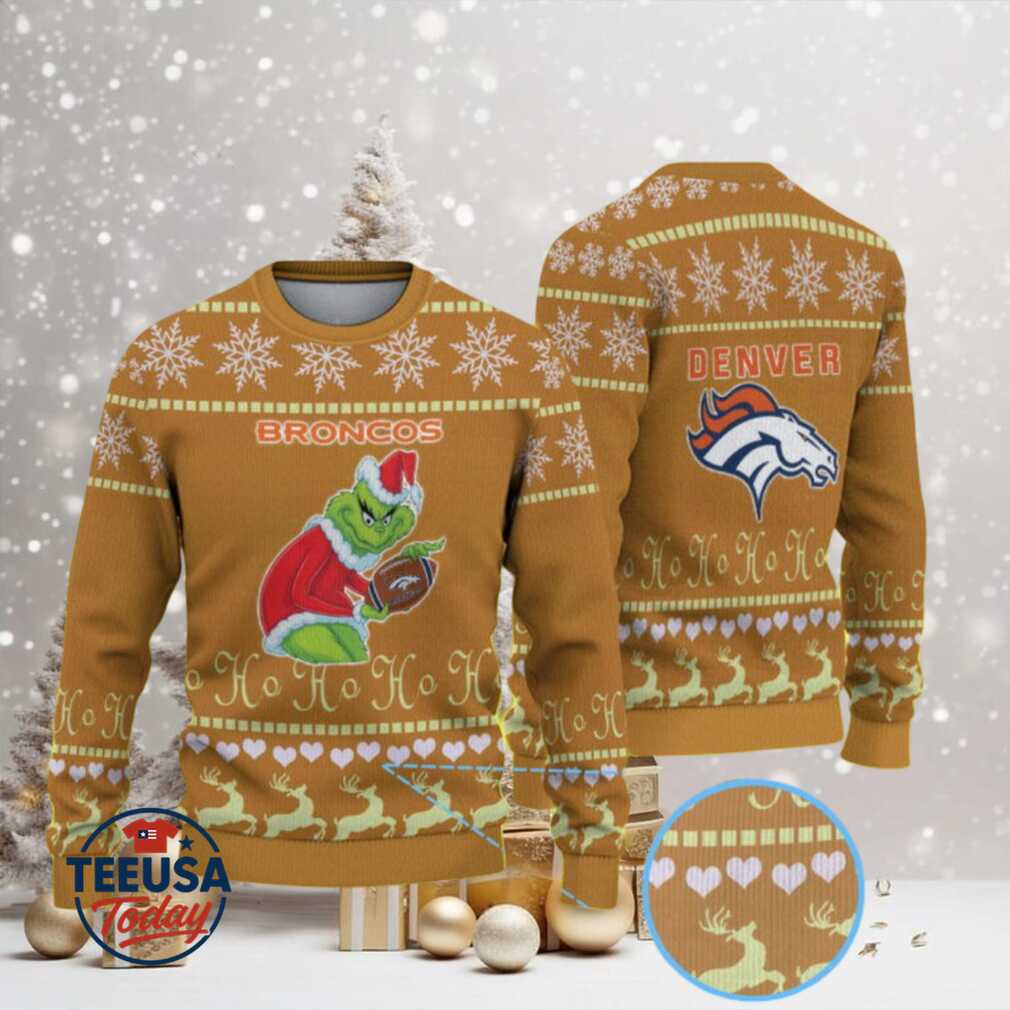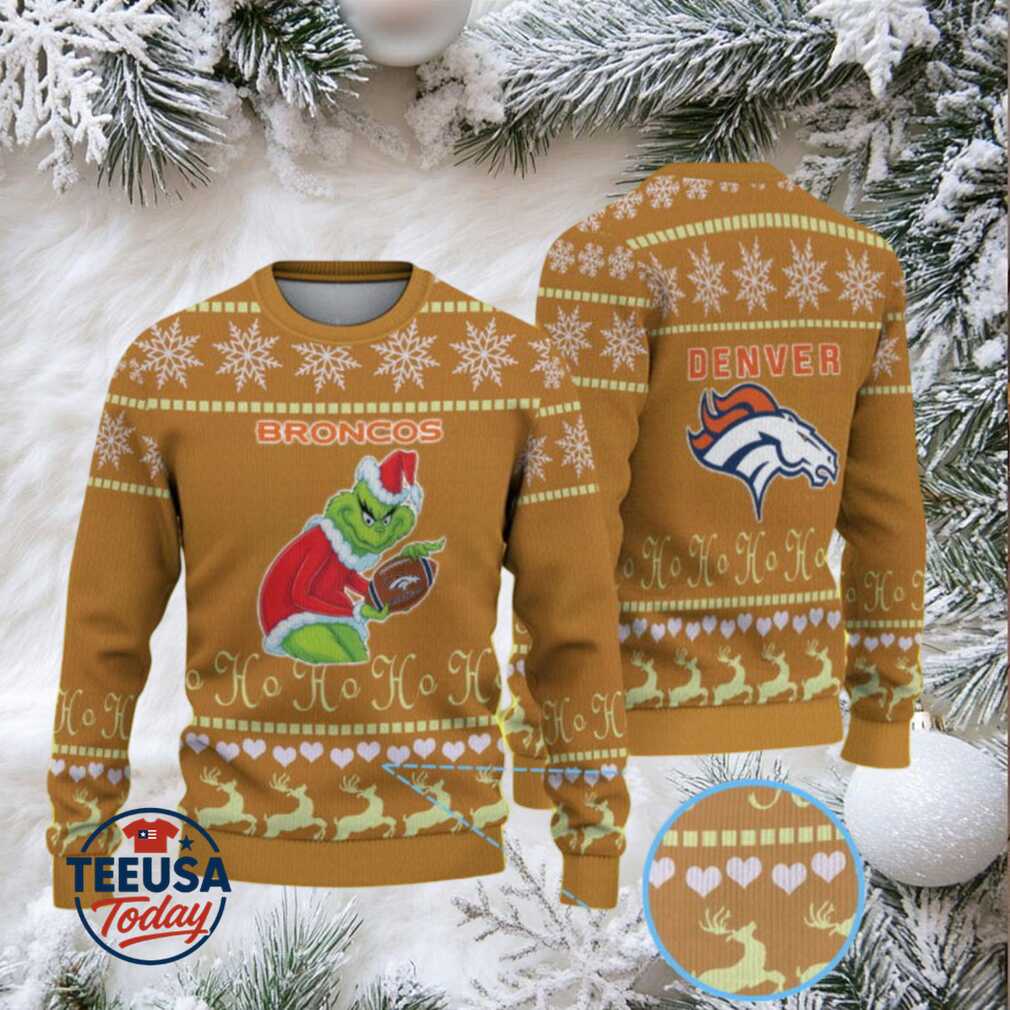 👕 About Brown Denver Broncos Grinch Reindeer Snowflake Pattern Vintage Ugly Christmas Sweater.jfif