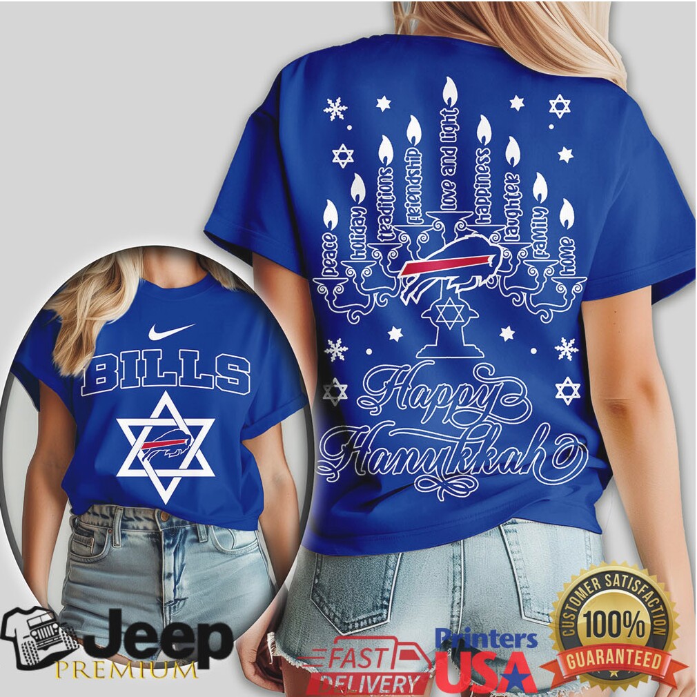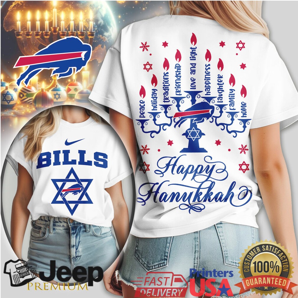 (Buffalo Bills Happy Hanukkah Menorah Star of David NFL T Shirt)