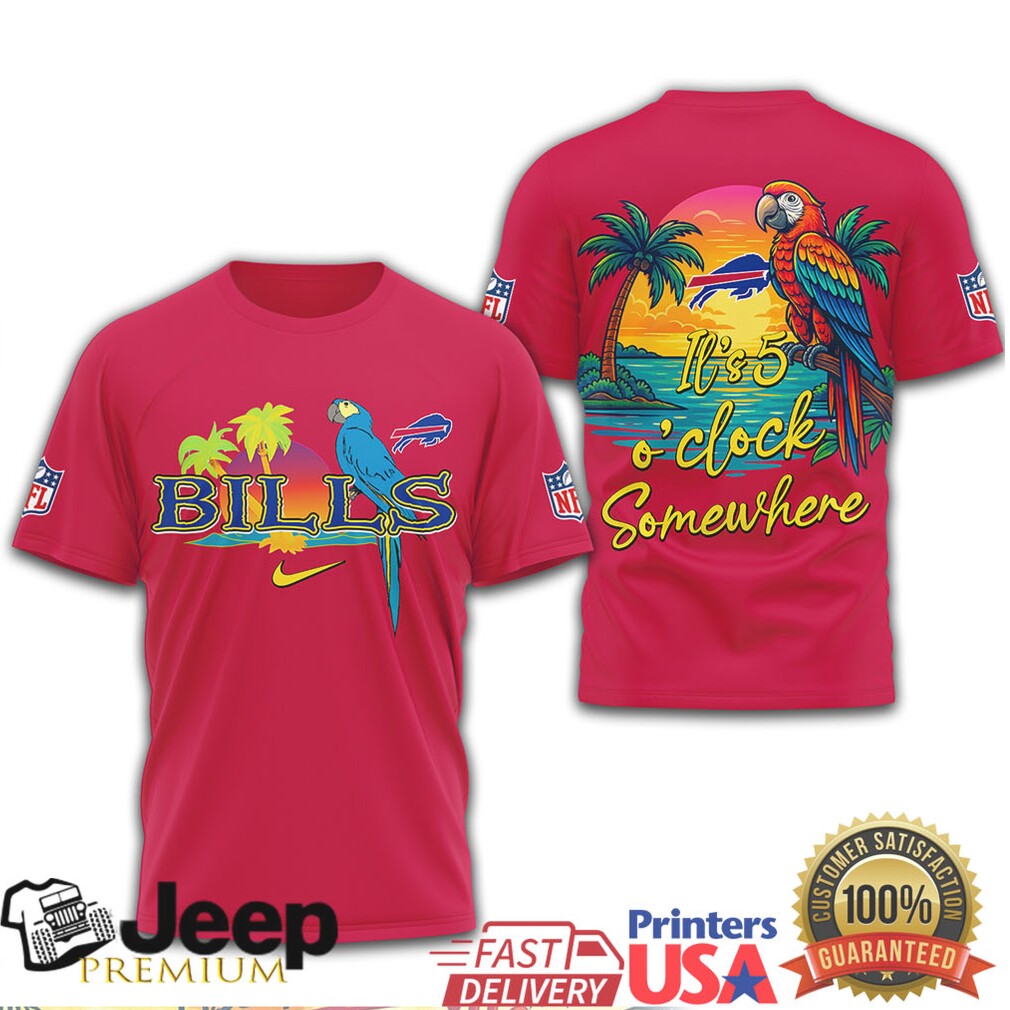 ()Buffalo Bills NFL Tropical Beach Parrot It’s 5 O’Clock Somewhere T Shirt, Treat yourself or make a great gift for your loved ones