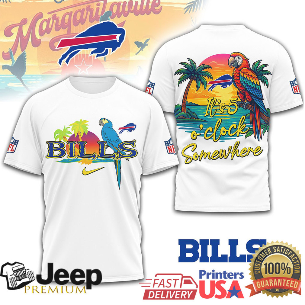 ()To this observer the finals tournament of 2026 is too big. Everyone being invited to the party because it’s ‘fair’ does nothing for quality and I predict a tournament largely of dross no better than a European tier three league game, interspersed with the odd diamond sparkle. The WC finals are supposed to be for the elite and whilst the logistical organisation will be as good as we would expect from the US, the concept and structure are an example of how to Buffalo Bills NFL Tropical Beach Parrot It’s 5 O’Clock Somewhere T Shirt beyond being reasonable. I fear in answer to the original ambiguous question I’m more likely to state, “Any other,” than the 2026 example. In terms of my own favourite finals tournament I would have to go for the one which gave me the most pleasure, our win of 1966 apart. I’d vote for the 1990 tournament. It was just so full of passion. The bulk of the additional 16 places to go to Africa and Asia. Europe could get an additional three.