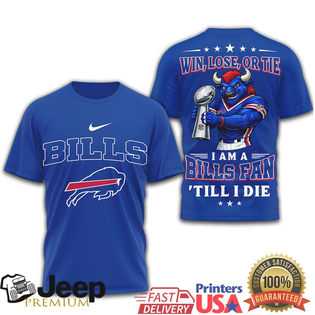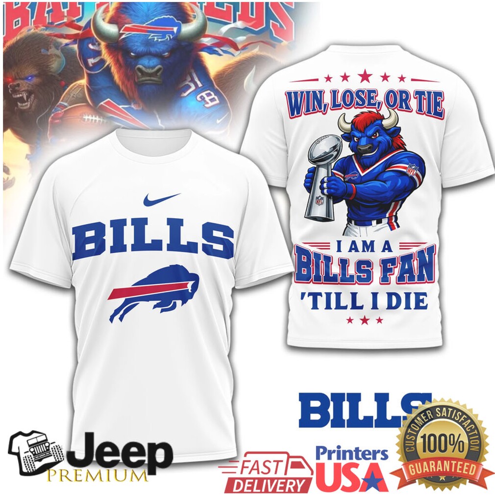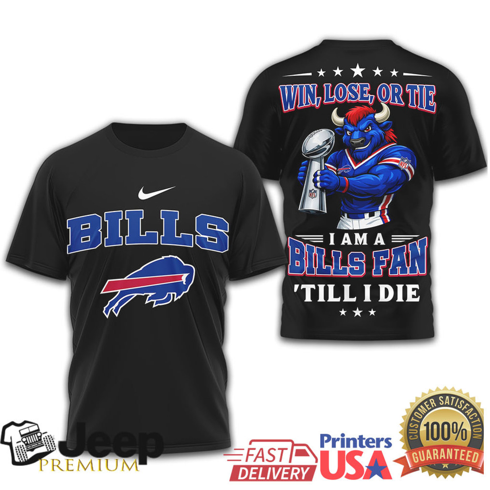 (Buffalo Bills Official NFL Football Fan Till I Die 3D Shirt)“The parity of the league is not predictable, but the NFL loves it. You had no team that is clearly head and shoulders above the others. The closest thing is Seattle, but even they lost to Tampa Bay, and had only one score wins over Arizona and Tennessee who combined for 6 wins this year. It is maybe more a tossup as to who wins the league this year than ever. Defending champs Philly have disappeared at times this year, looking as common as fans in Buffalo Bills Official NFL Football Fan Till I Die 3D Shirt in the stands. Buffalo is always a favorite but has had some tough games defensively. The Rams laid an egg against the Falcons and Panthers. The Bengals were picked to win the AFC North. They missed the playoffs.”