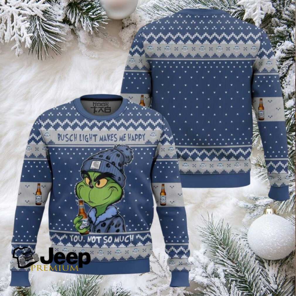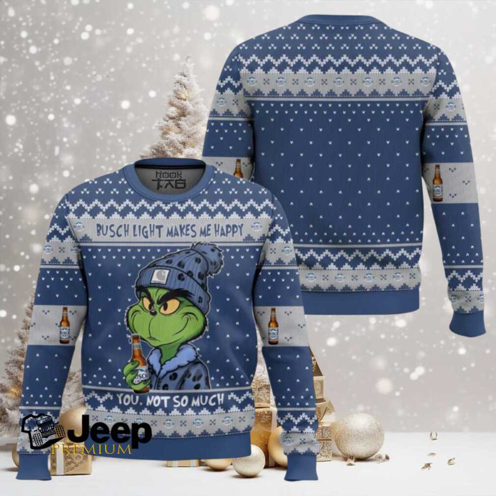 nForget boring holiday attire! This **Busch Light Makes Me Happy Ugly Christmas Sweater** solves the problem of finding a unique and genuinely fun Christmas sweater. Itβs perfect for adults who love the laid-back spirit of Busch Light and want to share their holiday happiness. Crafted from a soft, breathable fabric blend, it ensures you stay cozy and comfortable, whether you’re at a festive gathering or relaxing at home. The playful ‘Busch Light Makes Me Happy’ design, as seen in the first image, is sure to be a conversation starter. Available in a variety of sizes, this sweater offers a great fit for celebrating the season in comfort and style.n nnn