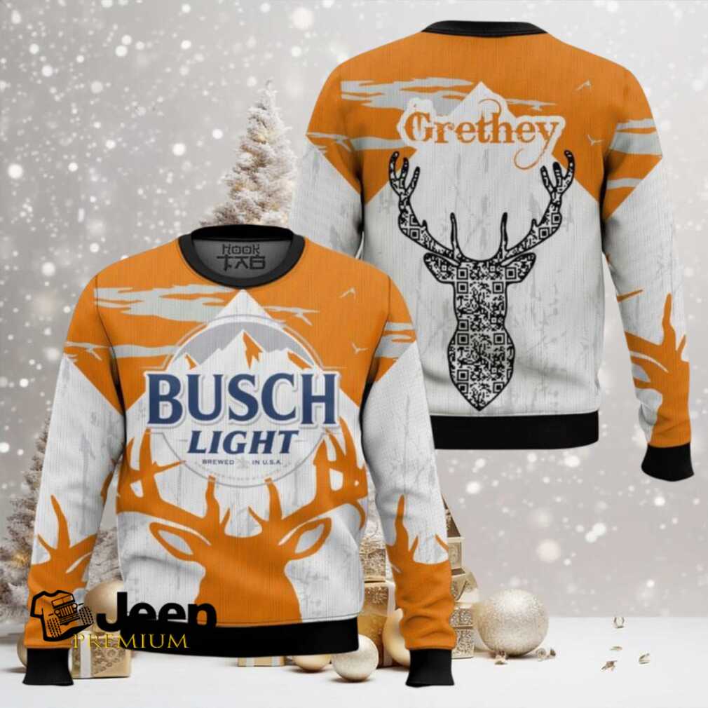 Picture yourself at the next holiday gathering, the life of the party in this eye-catching Busch Light Reindeer Ugly Christmas Sweater. Featuring a playful reindeer design integrated with iconic Busch Light elements, this sweater can be customized with your own name or a friend’s, making it a genuinely special piece. It’s the perfect conversation starter, ensuring you’ll get smiles and laughs. Made from a comfortable, soft cotton blend, this sweater is built for all-day wear, whether you’re caroling or enjoying a cold one. Available in various sizes, it offers a great fit for everyone. The first image perfectly captures the humor and unique style of this customizable sweater.