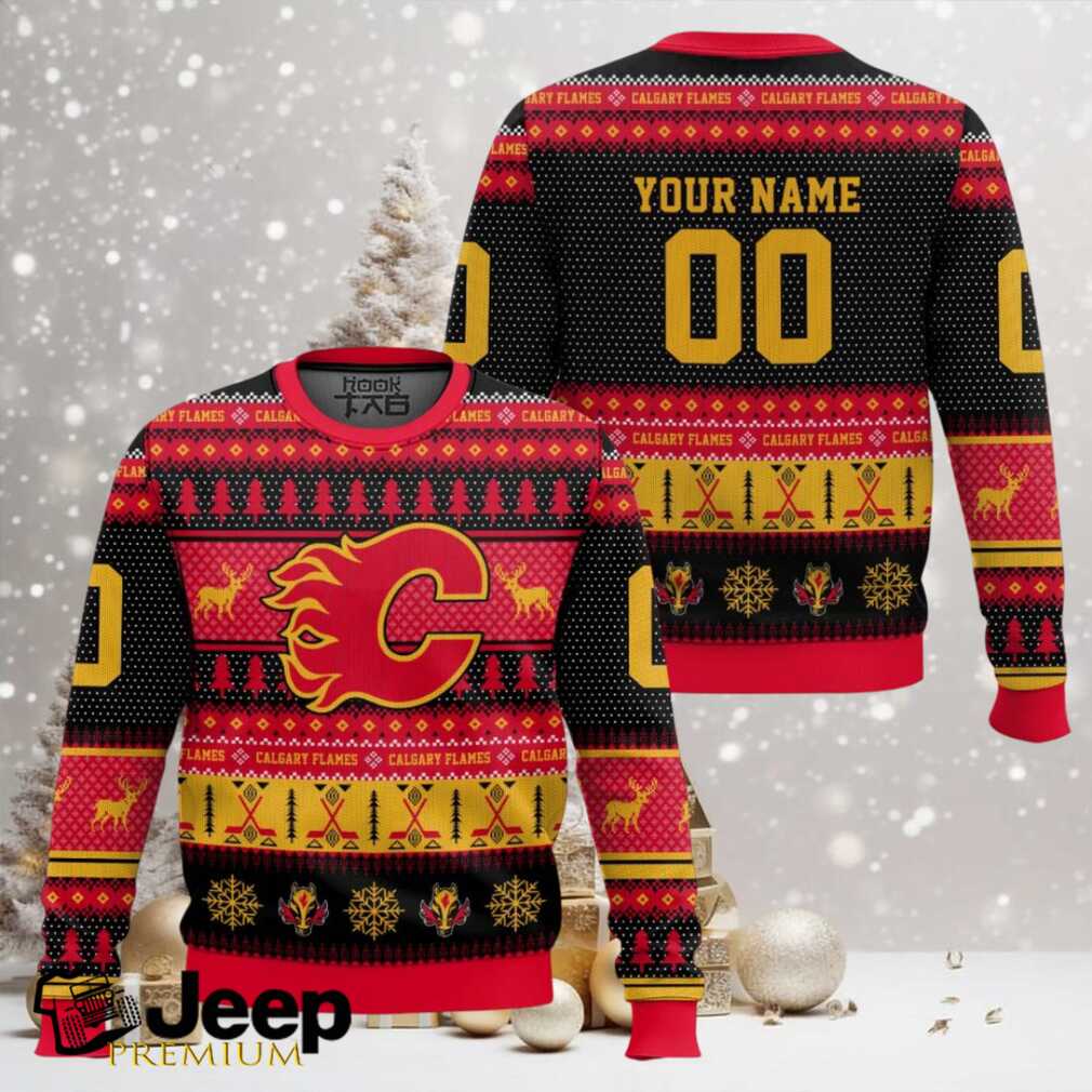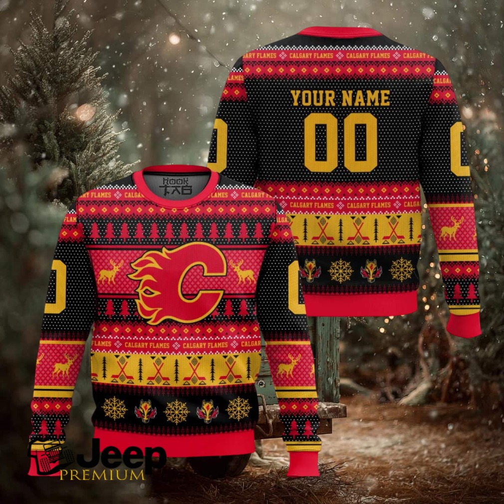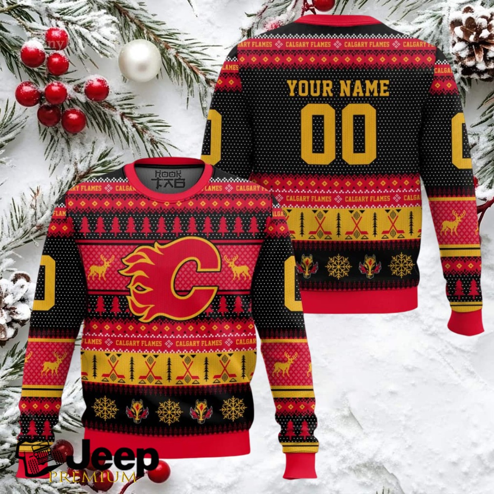 👕 About Calgary Flames – Custom Name And Number Ugly Sweater