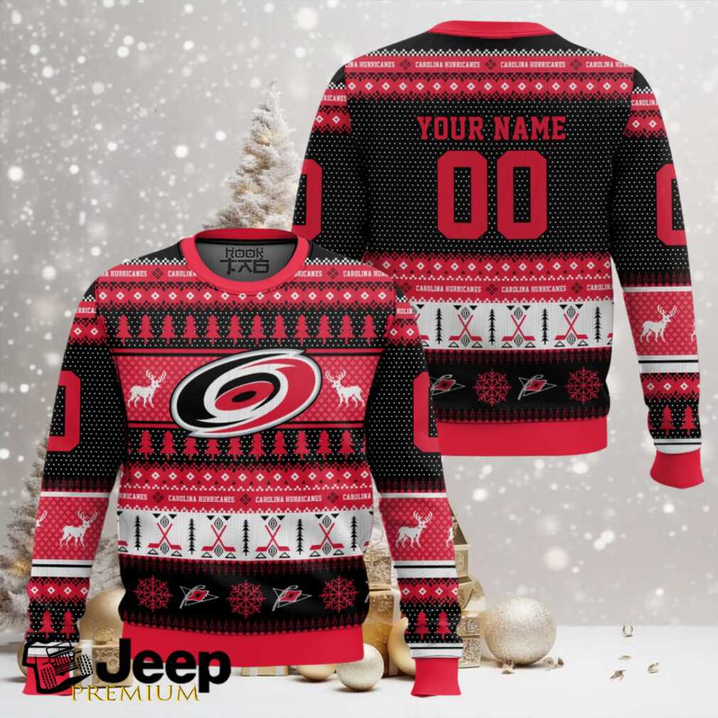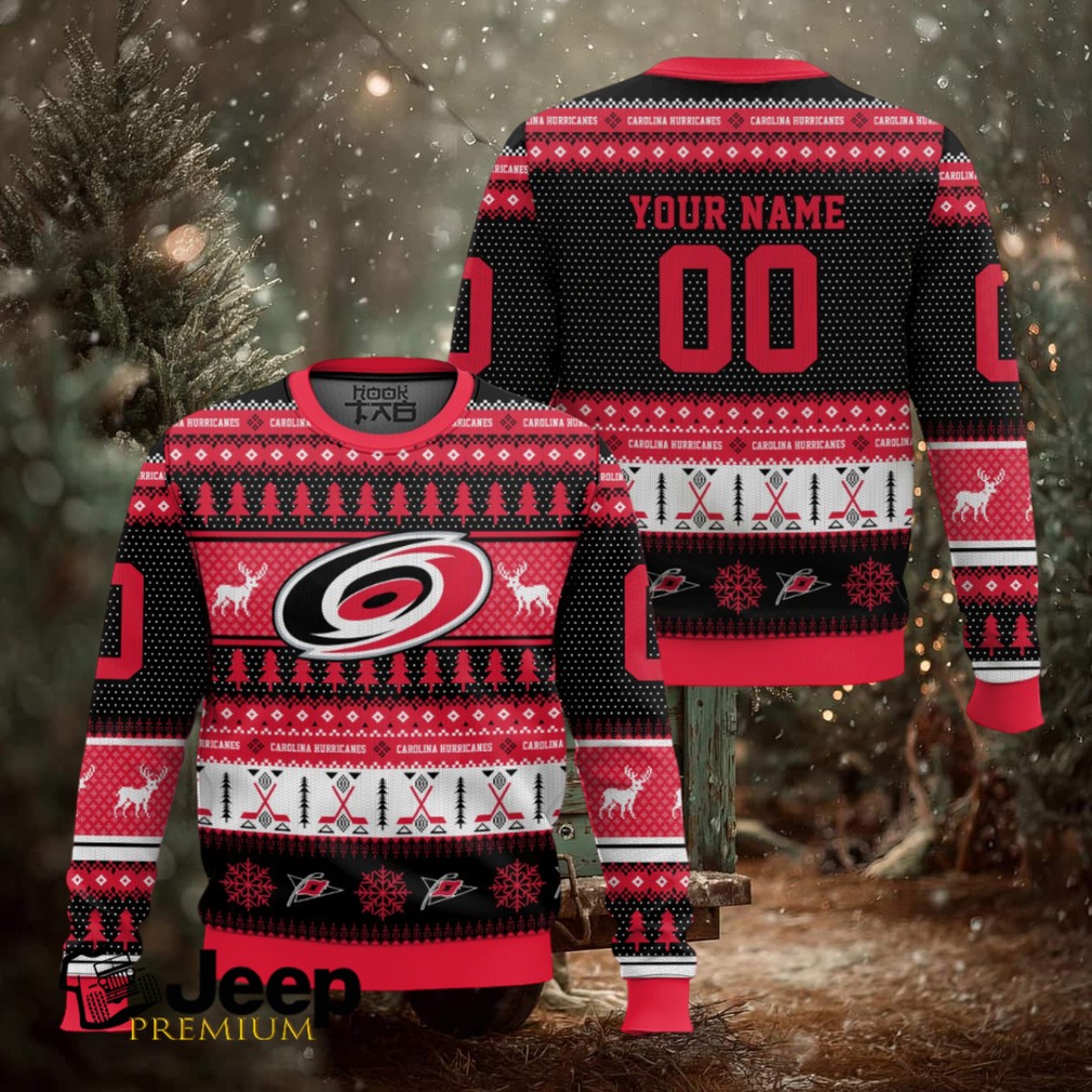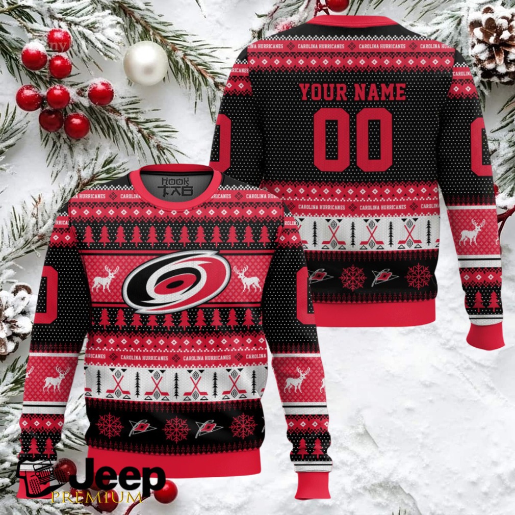 👕 About Carolina Hurricanes – Custom Name And Number Ugly Sweater