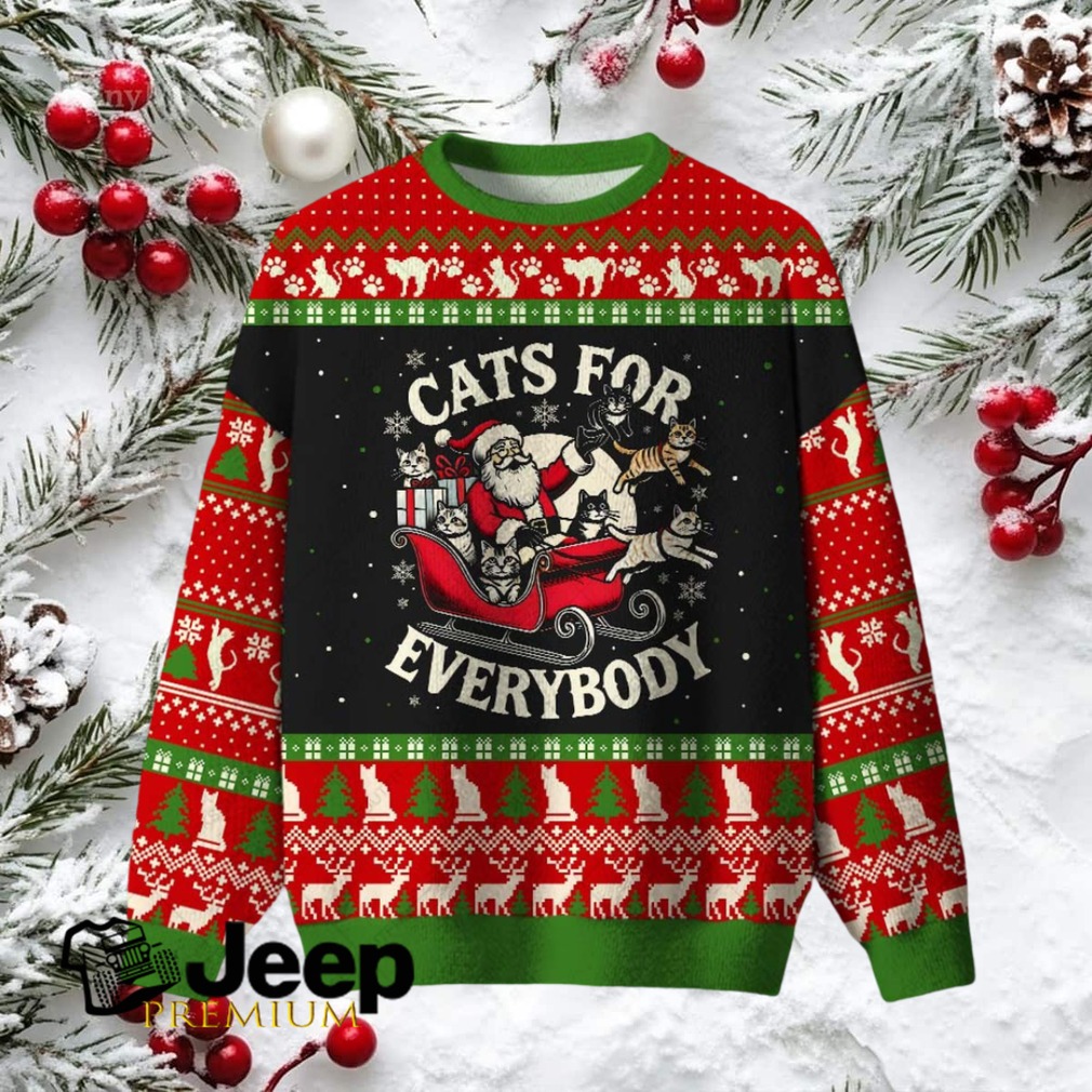 What Makes This Cats For Everybody Ugly Christmas Fuzzy Fleece Sweatshirt Epic