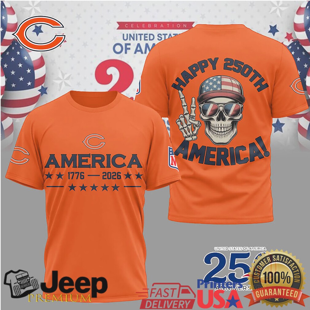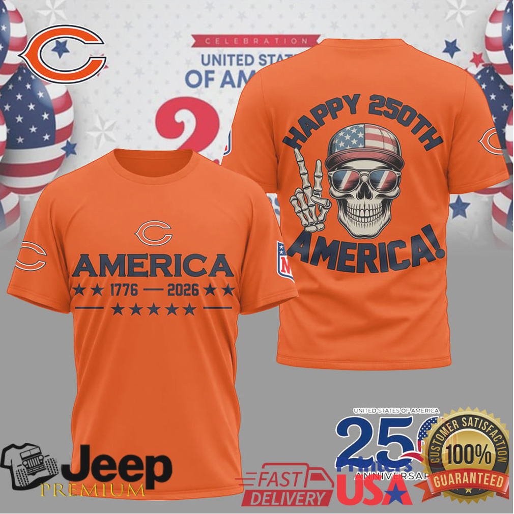 (Chicago Bears Happy 250th Anniversary America 1776 2026 Patriotic Skull T Shirt)