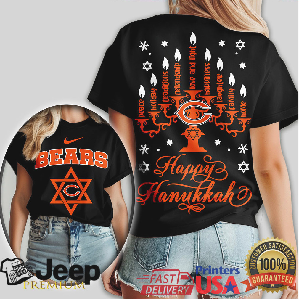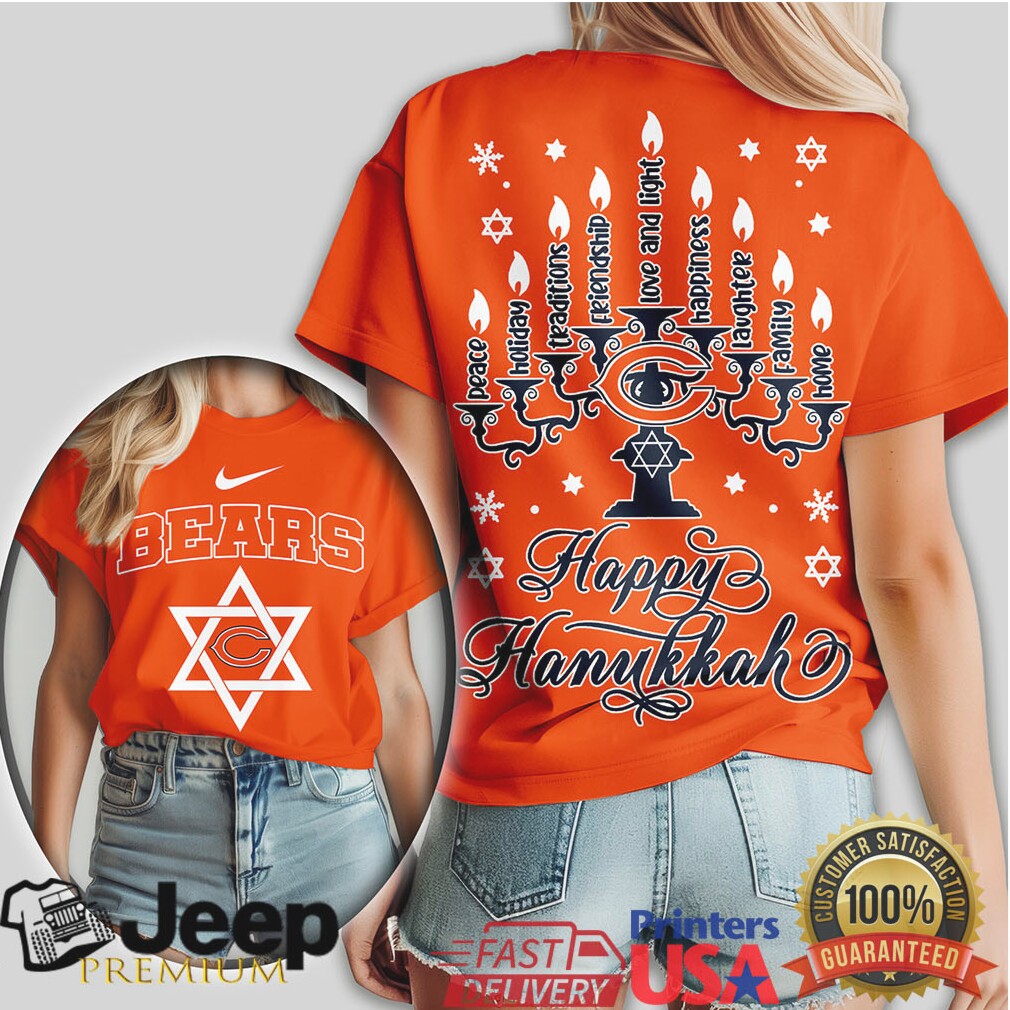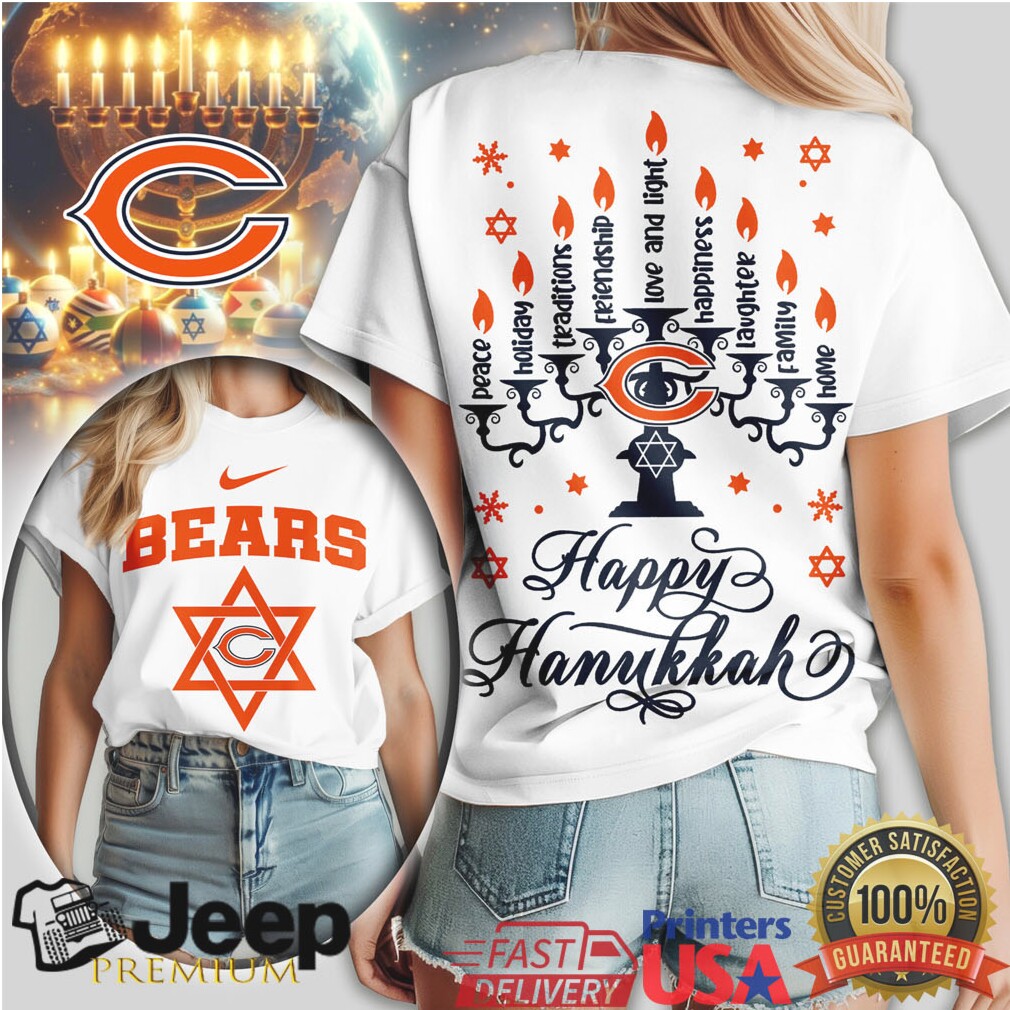 (Chicago Bears Happy Hanukkah Menorah Star of David NFL T Shirt)