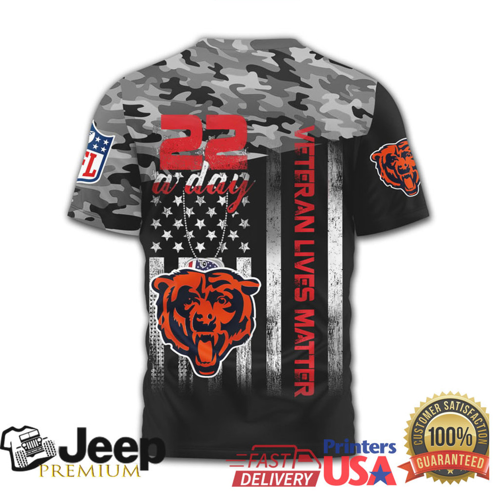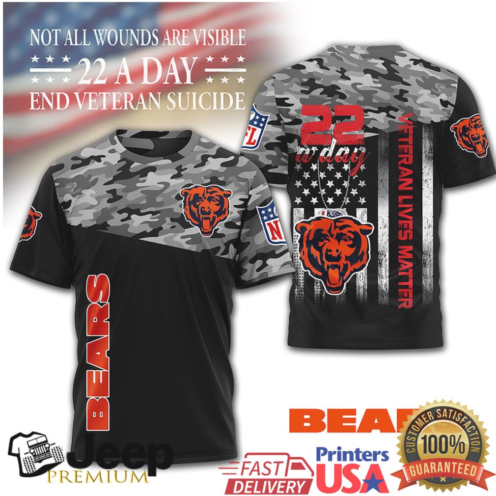 (Chicago Bears NFL Veteran Suicide Awareness 22 A Day Military Camo T Shirt)