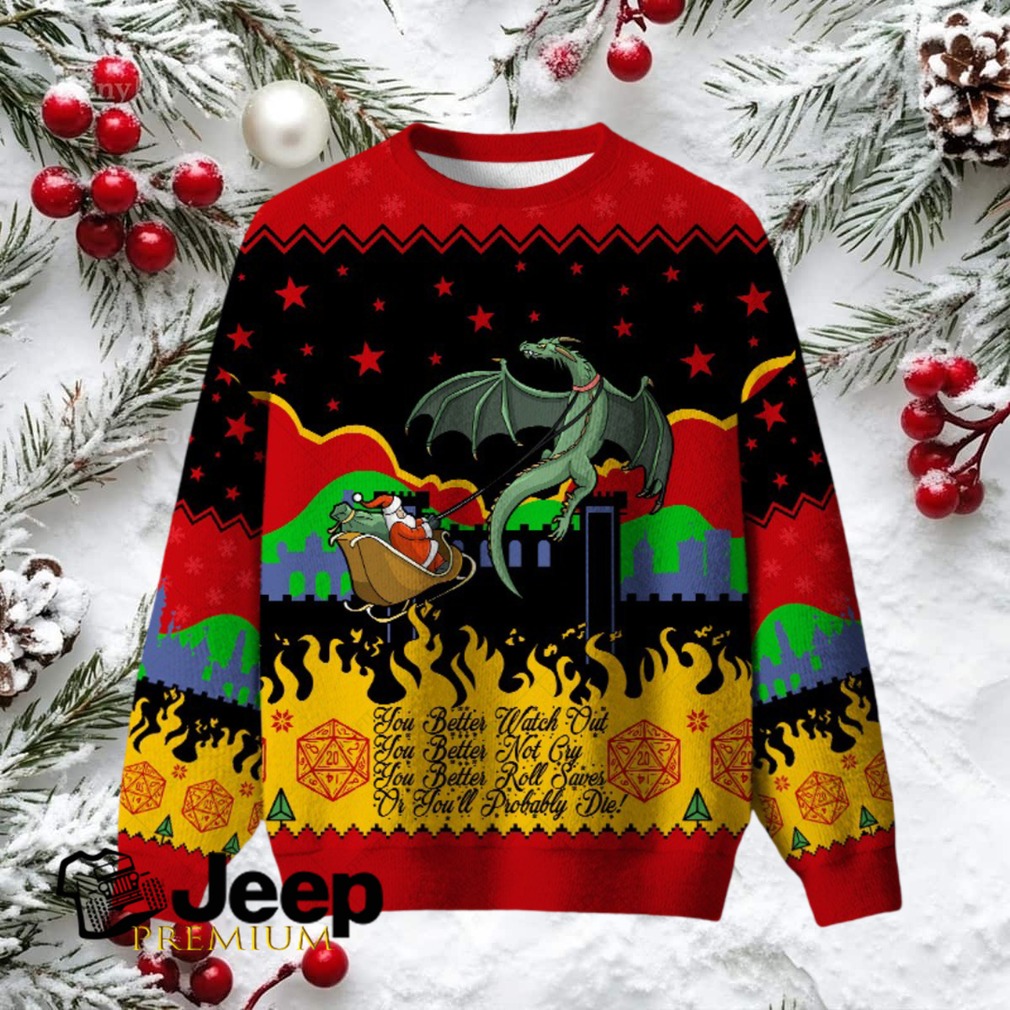 This fuzzy fleece sweatshirt is for the dedicated Dungeons and Dragons player, the board game enthusiast, and anyone who appreciates a unique, humorous take on holiday wear. It’s an ideal gift for your dungeon master, a fellow party member, or anyone in your life who lives for fantasy adventures. Wear it to your next ugly Christmas sweater party, a casual holiday get-together, or during a cozy night in with your favorite RPG.