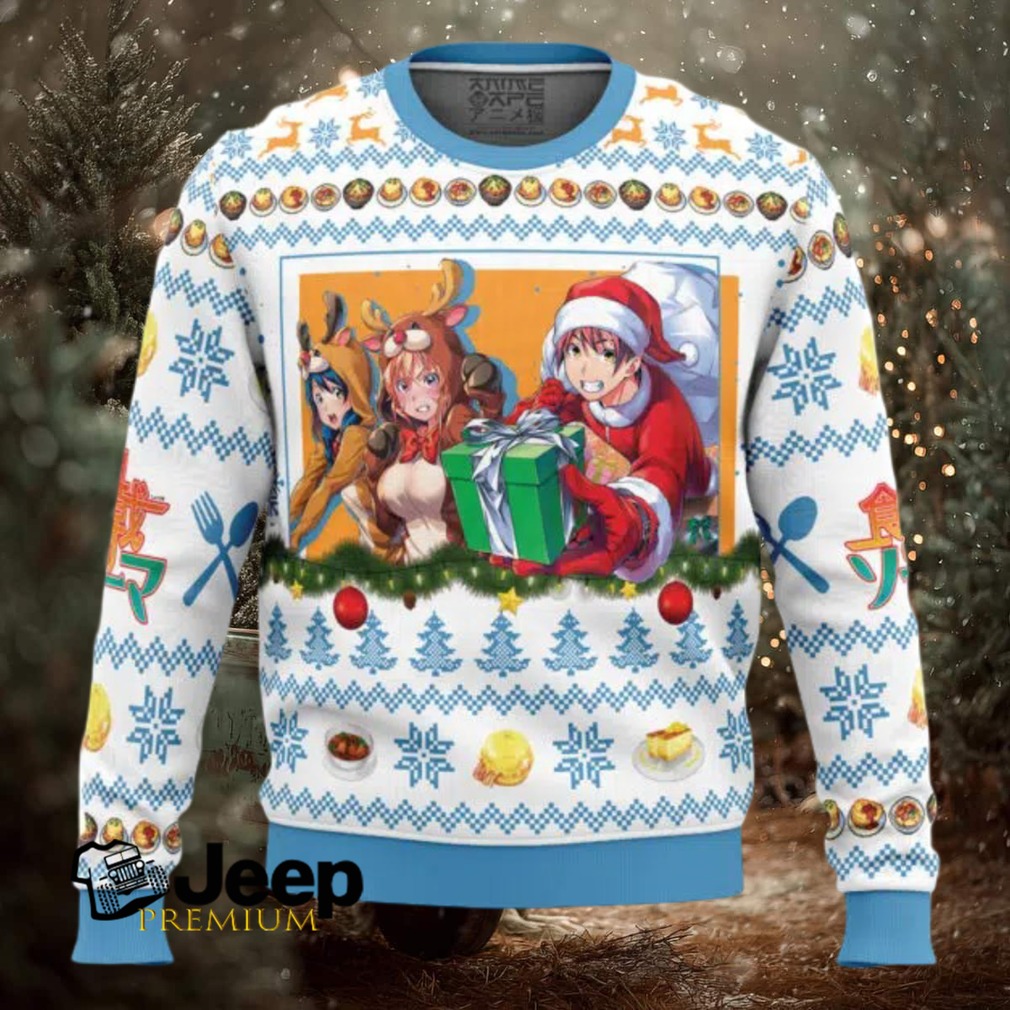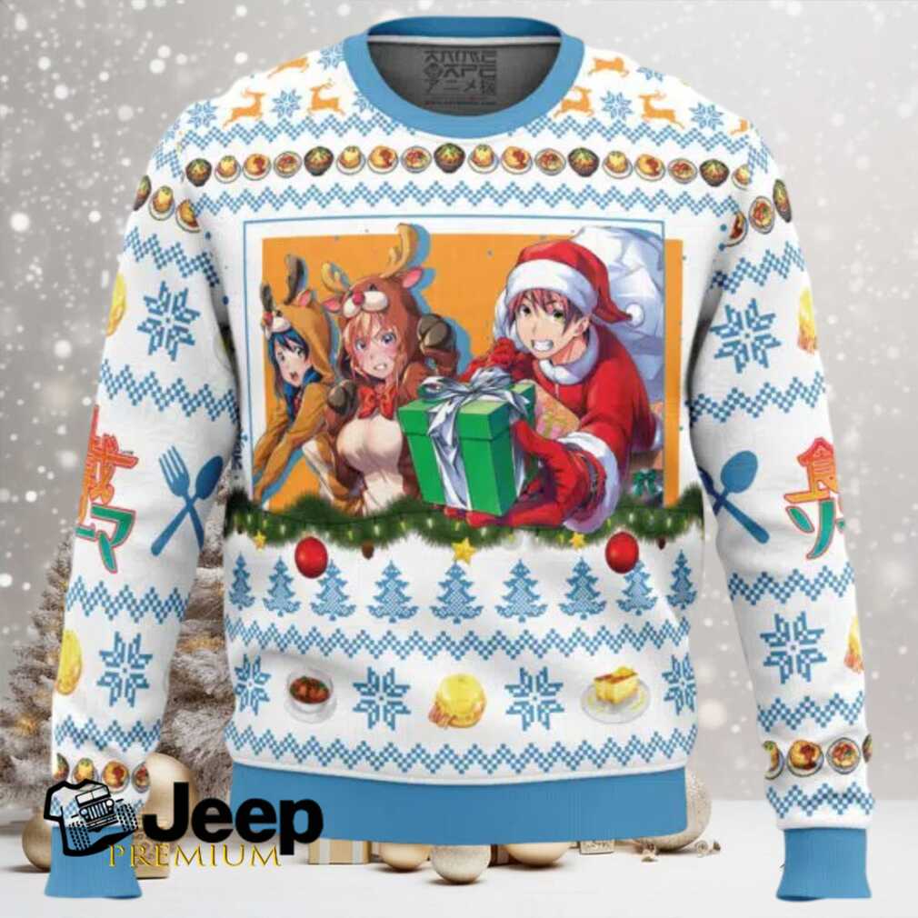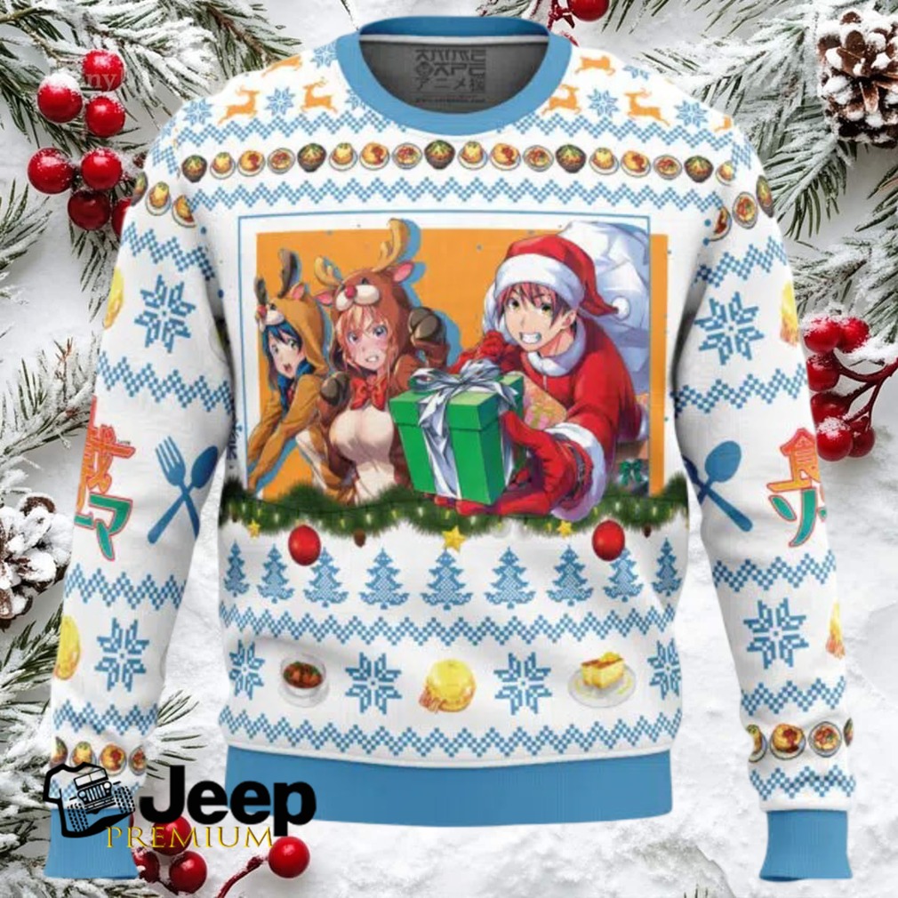 Spice up your holiday wardrobe with this Christmas Food Wars! Ugly Christmas Sweater. Perfect for fans of the culinary anime series, this sweater is sure to turn heads and ignite conversations at any holiday gathering. Imagine the look on fellow anime lovers’ faces when they see you sporting this unique festive design.