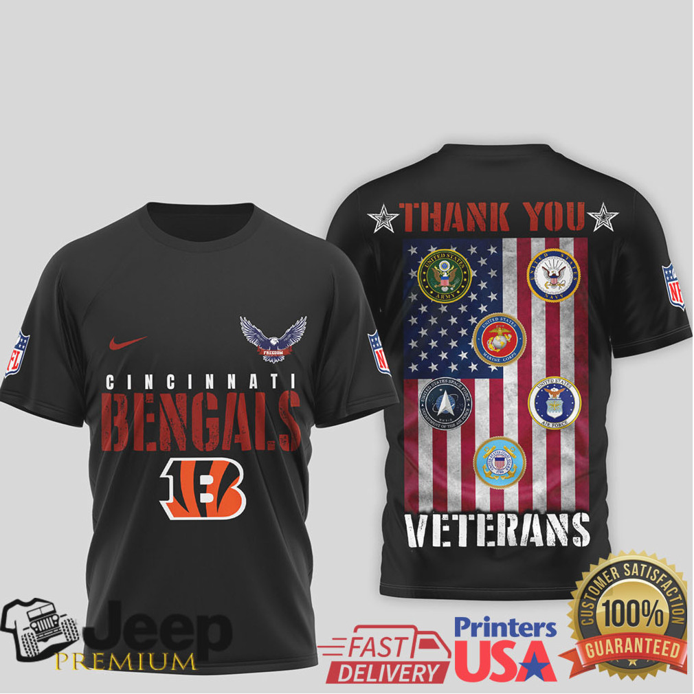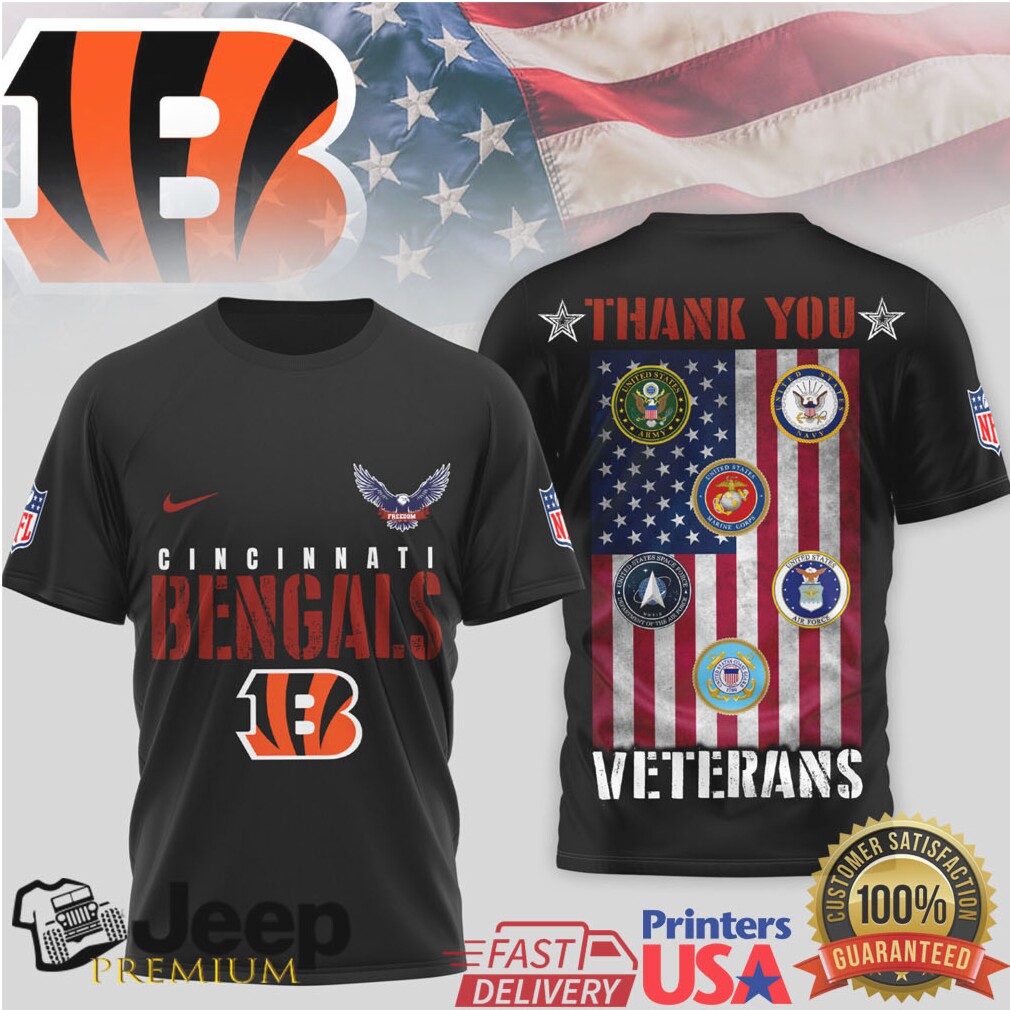 (Cincinnati Bengals Thank You Veterans Military Appreciation T Shirt)Another really important way this sport has affected my mental health is that, it has taught me to stay calm even in situations with friends, families etc. I have learned how to deal with anger, frustration, abusive words, listen to someone else’s problems and help them out calmly. Competition creates anxiety in people. Some competition we are told is good to motivate us but if there is too much pressure to compete anxiety levels go up creating a problem. When you add to this a culture of sport, as we have in Australia, wearing Cincinnati Bengals Thank You Veterans Military Appreciation T Shirt and winning is paramount regardless of the injuries a player receives. Frequently they get drunk, use illicit drugs and become addicted to sex, workouts, dieting, and other self-destroying activities to anaesthetise themselves to take their minds off the disaster of their lives. All the enablers around them are supporting them in this to make sure they don’t leave. This cycle highlights the darker side of high-pressure athletics where the physical toll is often accompanied by a devastating psychological price that is rarely discussed in the public eye until a crisis occurs for the athlete.
