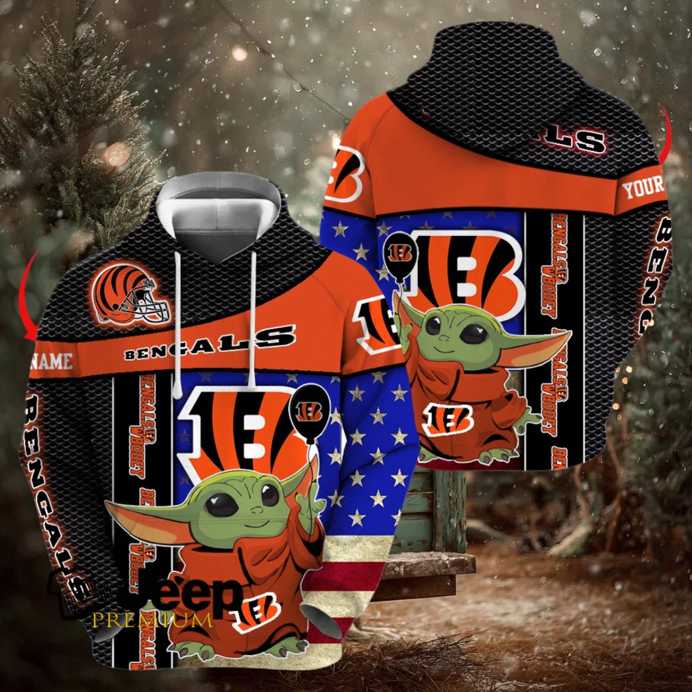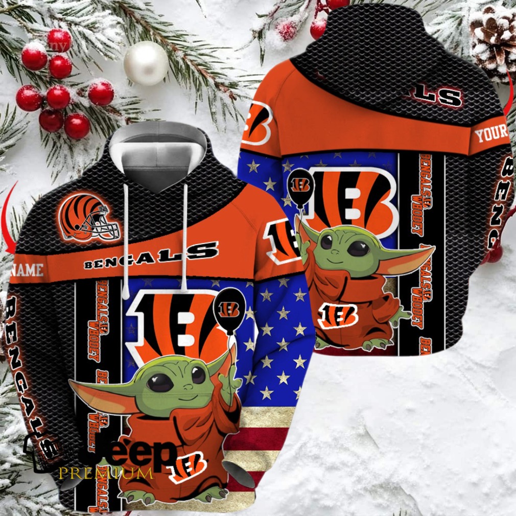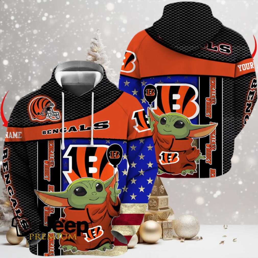 👕 About Cincinnati Bengals x Baby Yoda Holding Baloon Football Hoodie 3D Custom Name