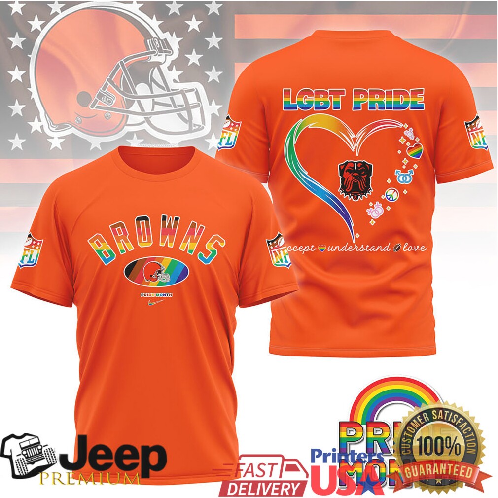(Cleveland Browns LGBT Pride Month Rainbow Heart T Shirt)Cleveland Browns LGBT Pride Month Rainbow Heart T Shirt