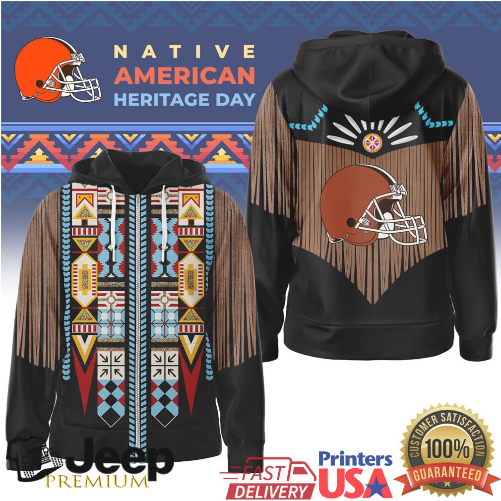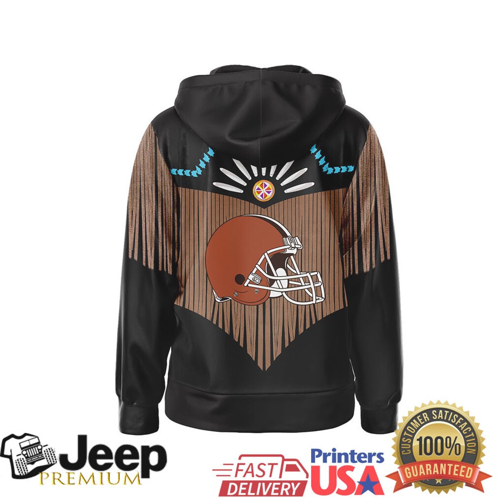 👕 About Cleveland Browns Official NFL Native American Pattern 3D Zip Hoodie