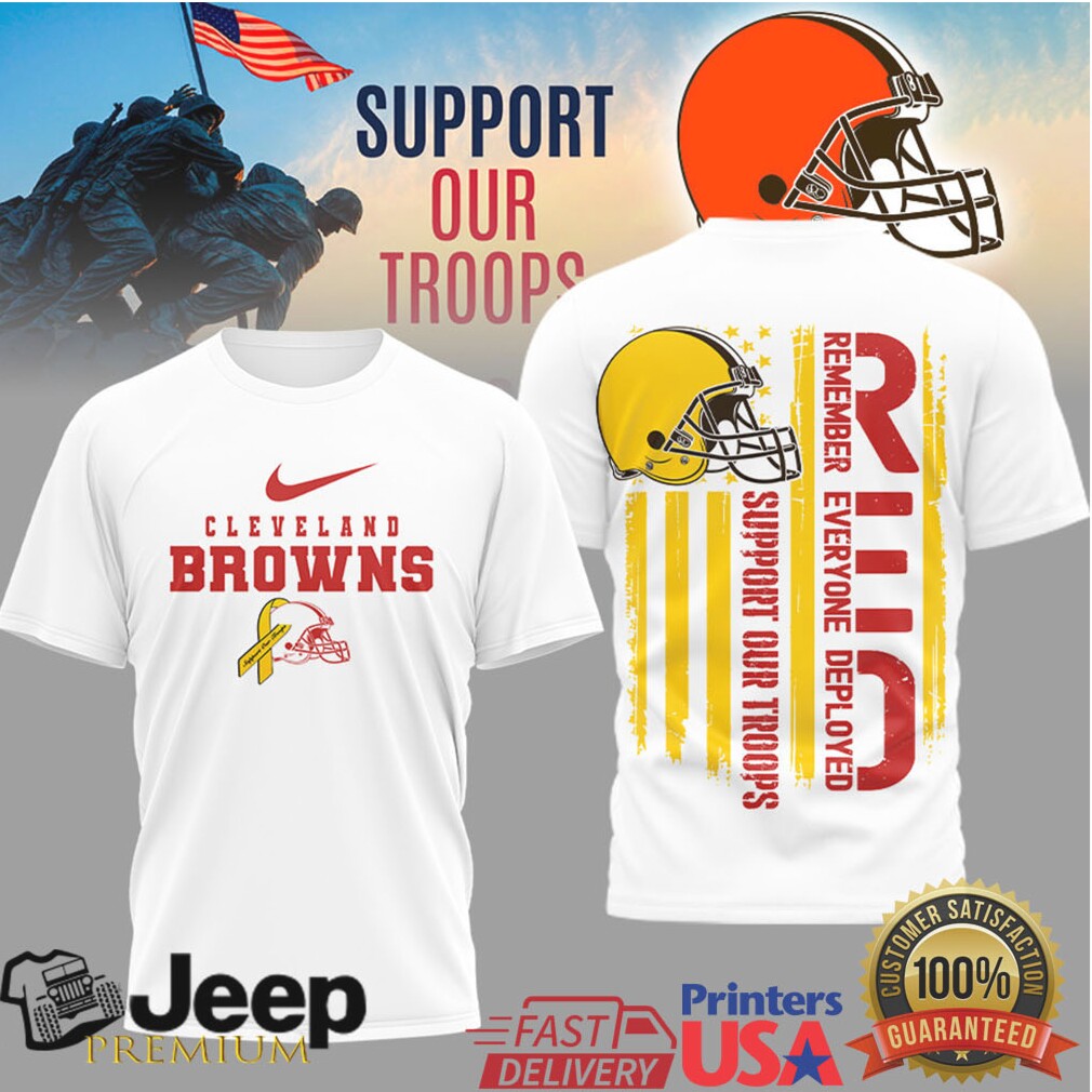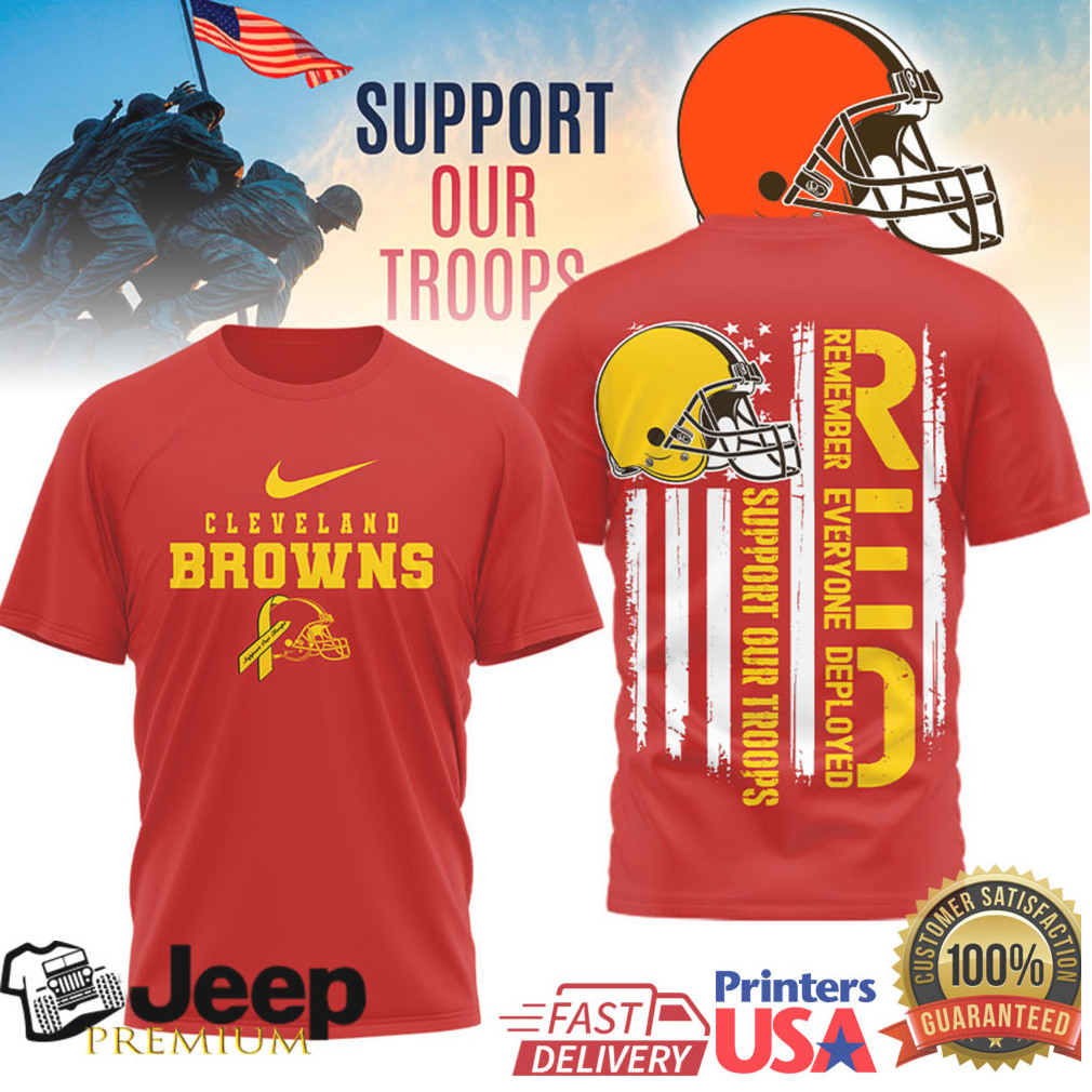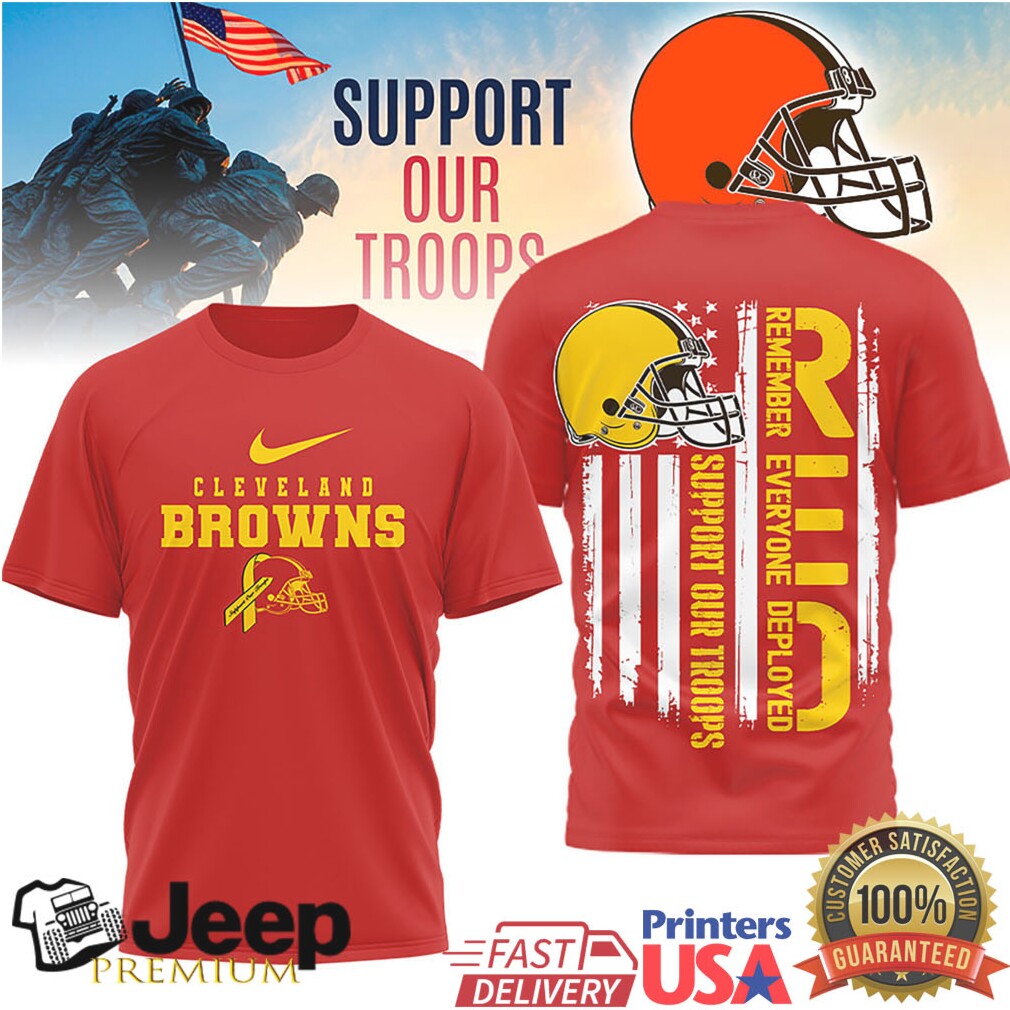 👕 About Cleveland Browns Support Our Troops RED Remember Everyone Deployed T Shirt