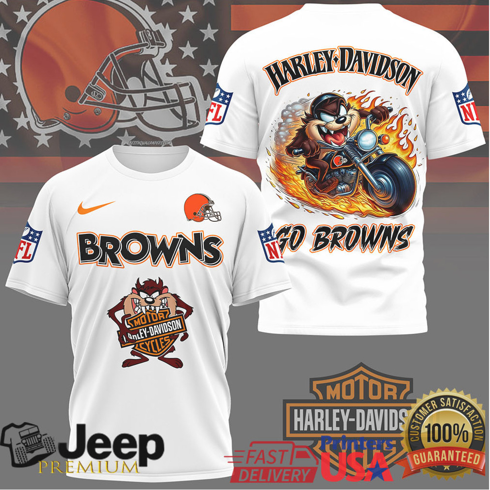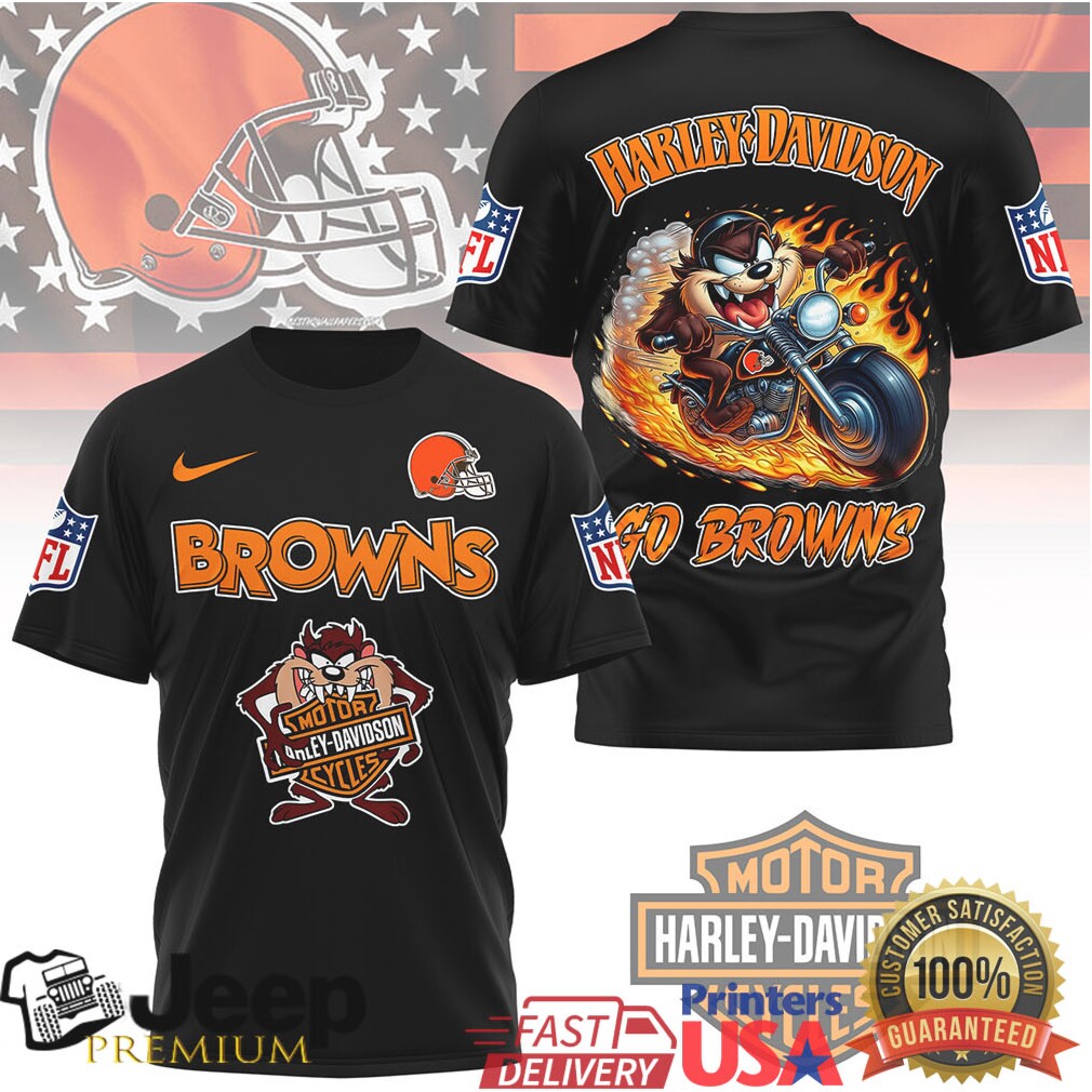 ()Cleveland Browns x Harley Davidson Taz Biker Flame NFL Graphic T Shirt, Treat yourself or make a great gift for your loved ones