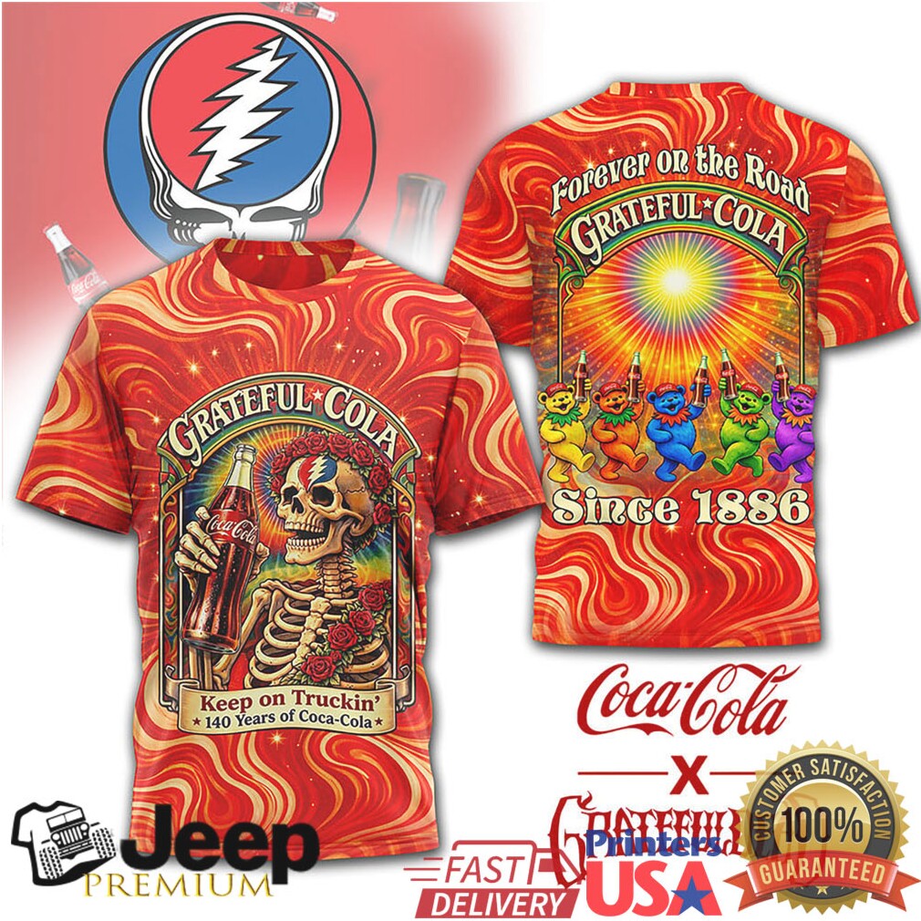 Be the first to review “Coca Cola x Grateful Dead Grateful Cola 140 Years Keep on Truckin’ T Shirt” Cancel reply