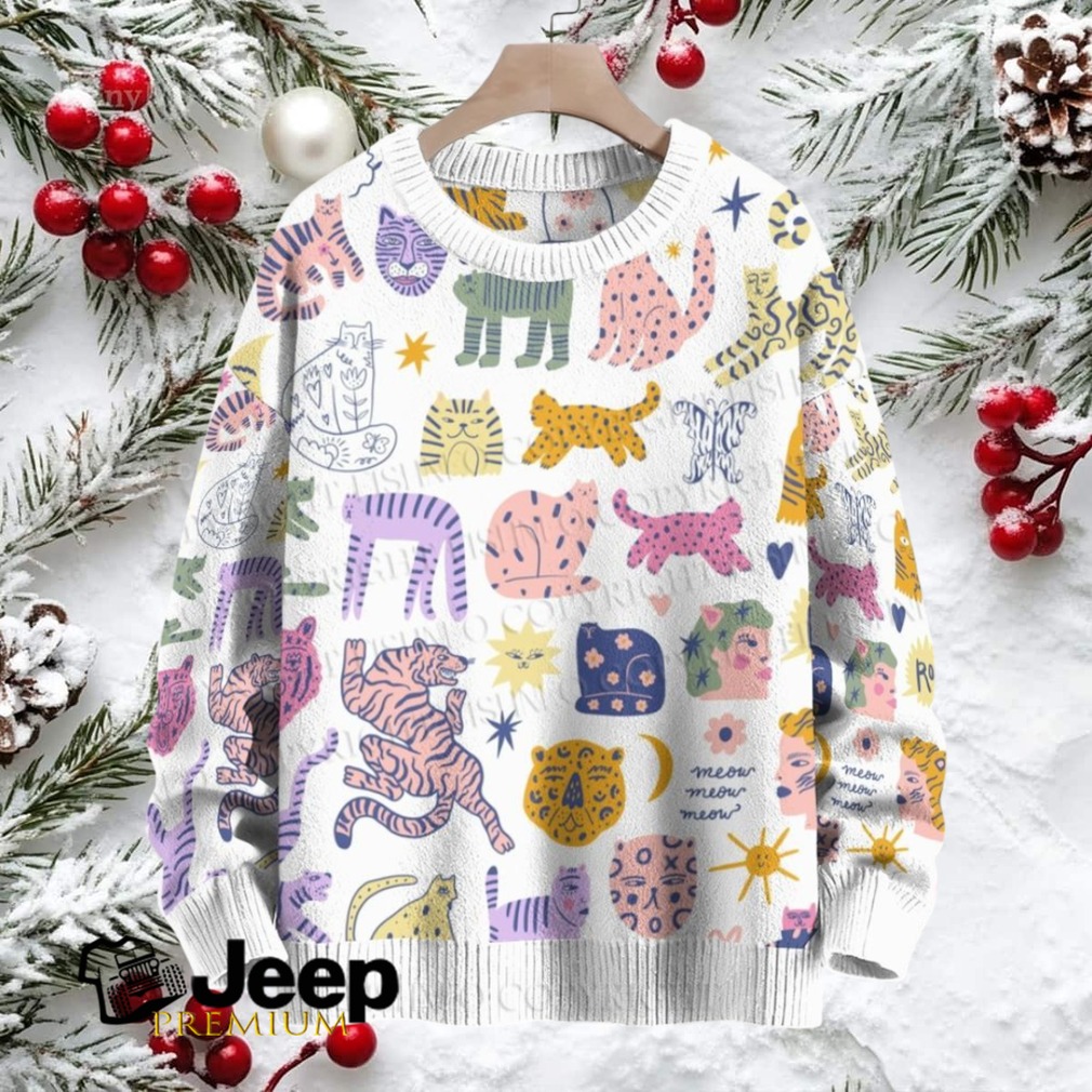 👕 About Colorful Cartoon Cat Printed Crew Neck Sweater