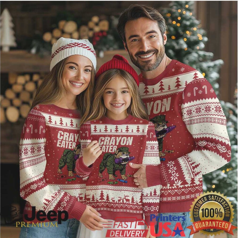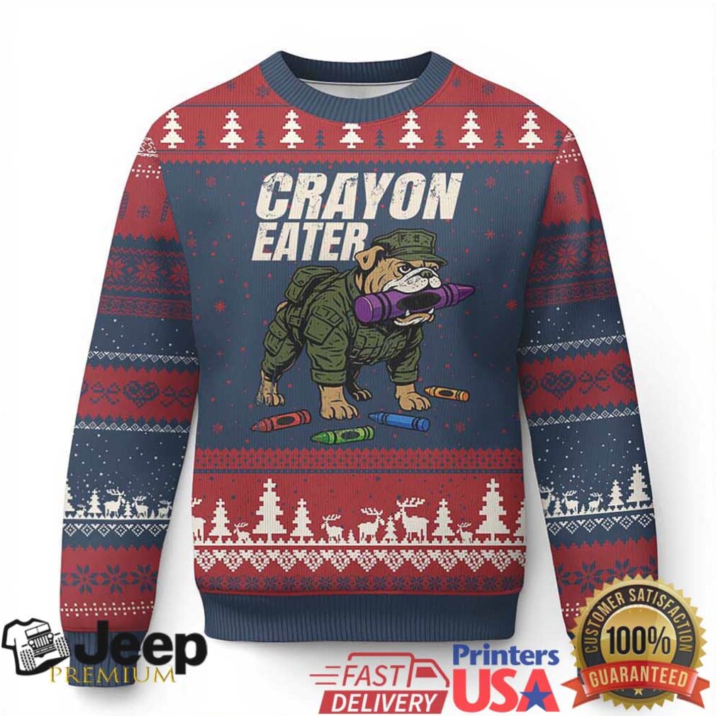 This Crayon Eater Ugly Christmas Sweater is a unique tribute to the brave men and women of the military, combined with a healthy dose of holiday humor. It solves the problem of finding a Christmas sweater that reflects your military background and playful personality. Featuring a funny bulldog and “Crayon Eater” slogan, it’s a guaranteed conversation starter at any holiday gathering. Made with a comfortable, durable blend, it’s designed to last through many holiday seasons. Available in various sizes; please check the size chart to get a perfect fit. See product images for design details!