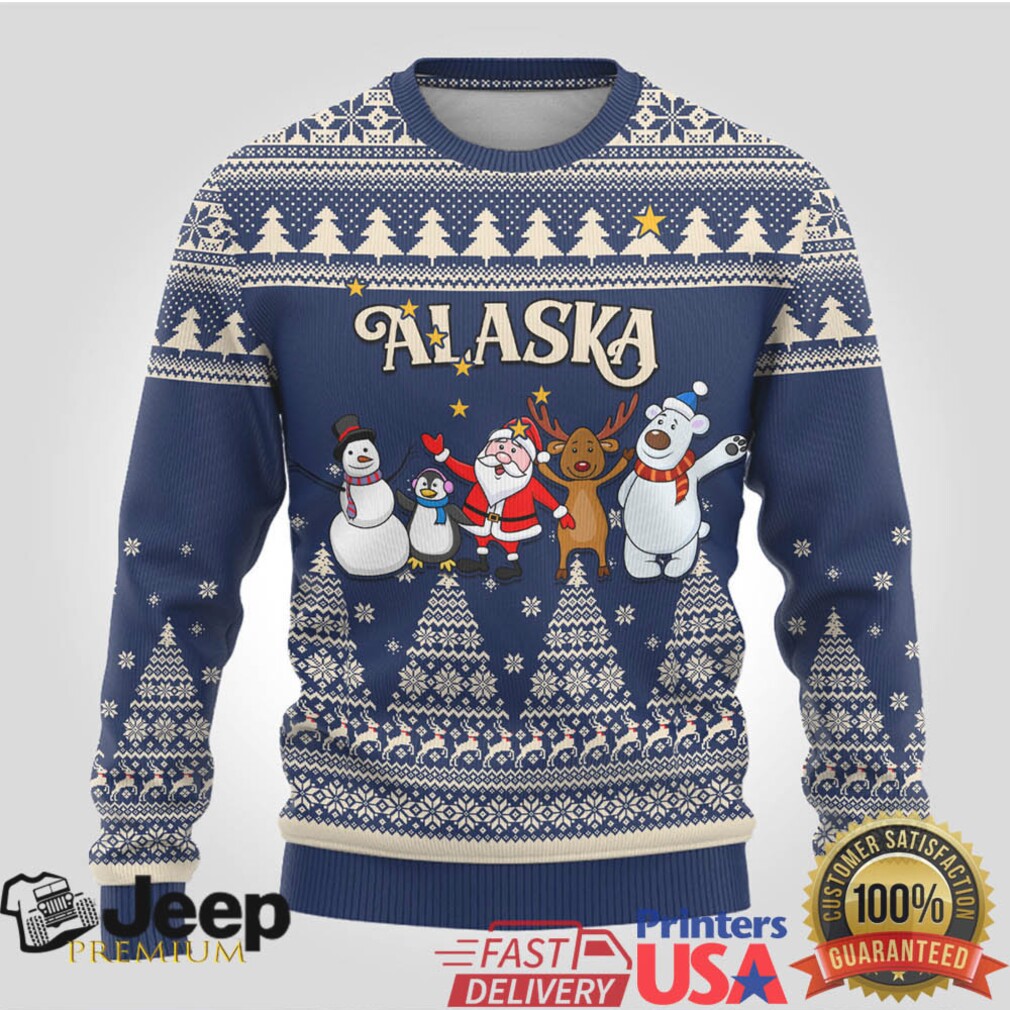 👕 About Custom Alaska Christmas Ugly Christmas Sweater Santa Claus With Snowman Reindeer Penguin